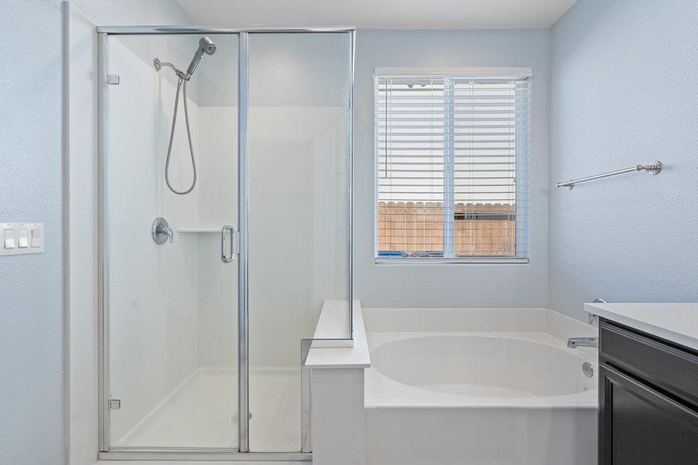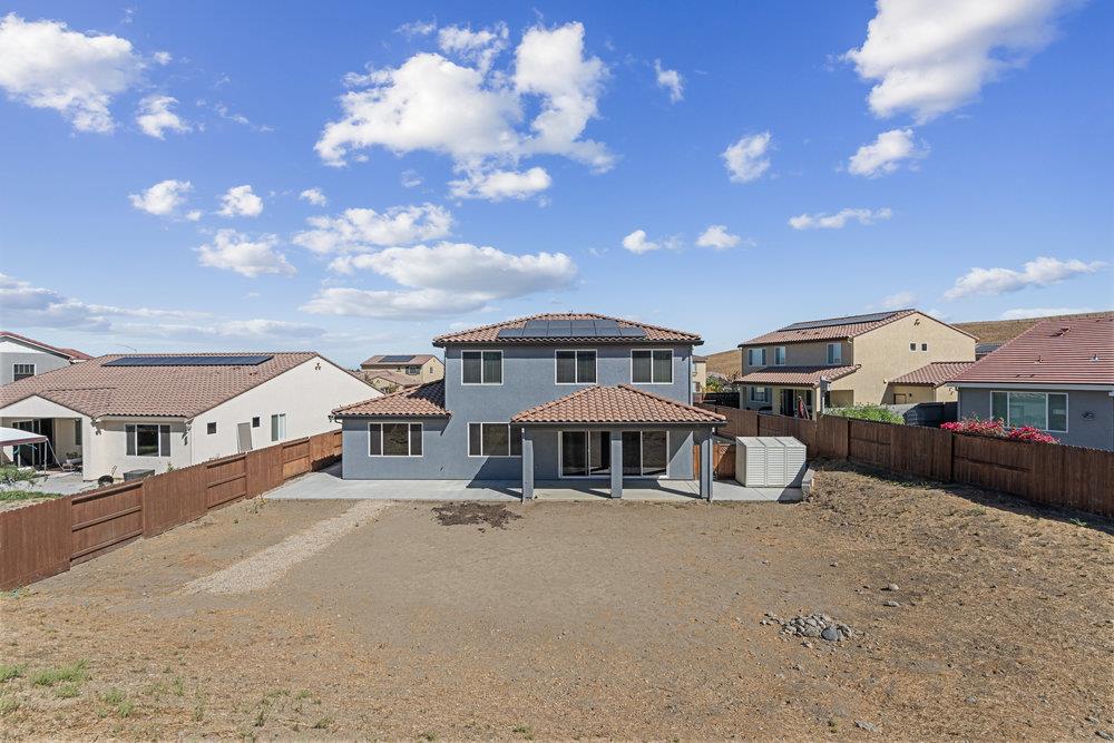 Luxury living in this 2021 CUSTOM Bennett Ranch home. You asked for UPGRADES? Here you go! 4-5 bed/2.5 bath 2,766 sq ft. - HUGE lot. Step inside & you'll find a bright & inviting layout that makes daily living easy, with plenty of room to relax or entertain. TRUE 3 door 3 car garage. Dual zone Heat/AC. Solar is completely owned 3.5kw. No HOA fees. This is the Audrey floorplan & was designed to accommodate another bedroom & full bathroom downstairs (currently used as a flex space/den/hobby room). The remaining 3 bedrooms, full bath w/ double vanity & a large loft upstairs. LARGE Laundry room downstairs. Primary bedroom SUITE downstairs. Extra wide driveway w/ concrete down each side of the house & an OVERSIZED covered patio in the back. Windows professionally tinted. LVP/Tile/High End Mohawk Carpet. New interior/exterior paint. Added LED lights in den/garage. The whole house & backyard patio are pre-wired for ceiling fans. Upgraded blinds throughout home. EXPANSIVE sliding glass door system from kitchen/family room area to backyard PLUS gorgeous windows & tons of natural light. Extra fencing added on driveway side & backyard side. Garage is a DREAM - tape/texture/paint & epoxy floor, extra lighting & ceiling fans + Heat/AC split & Water Softener pre-plumbed. EV charger pre-wired.