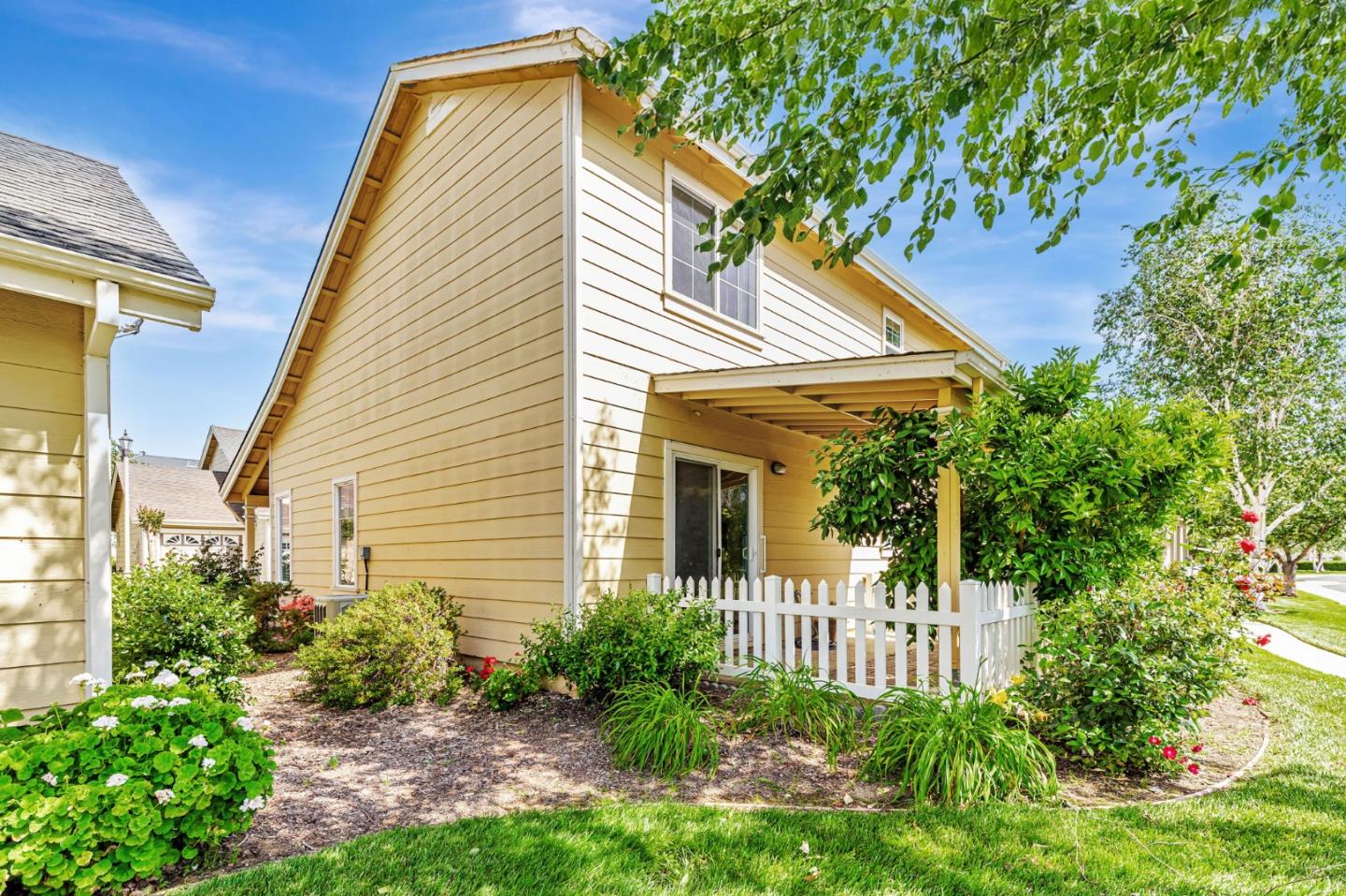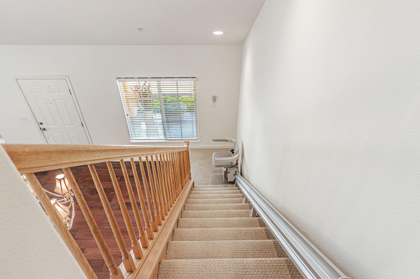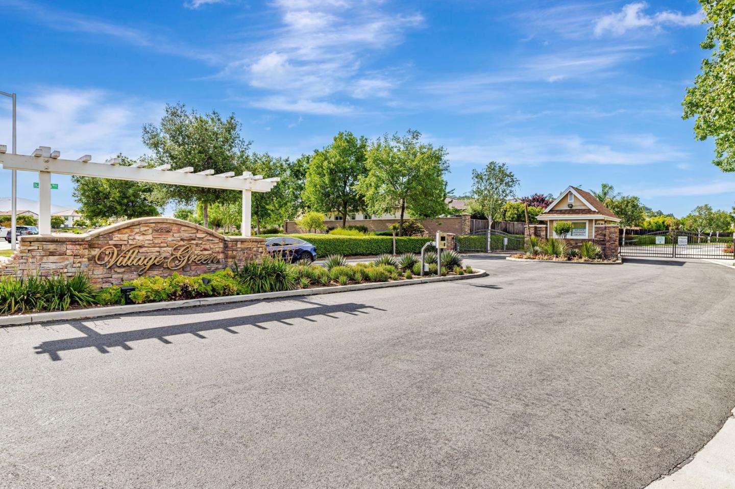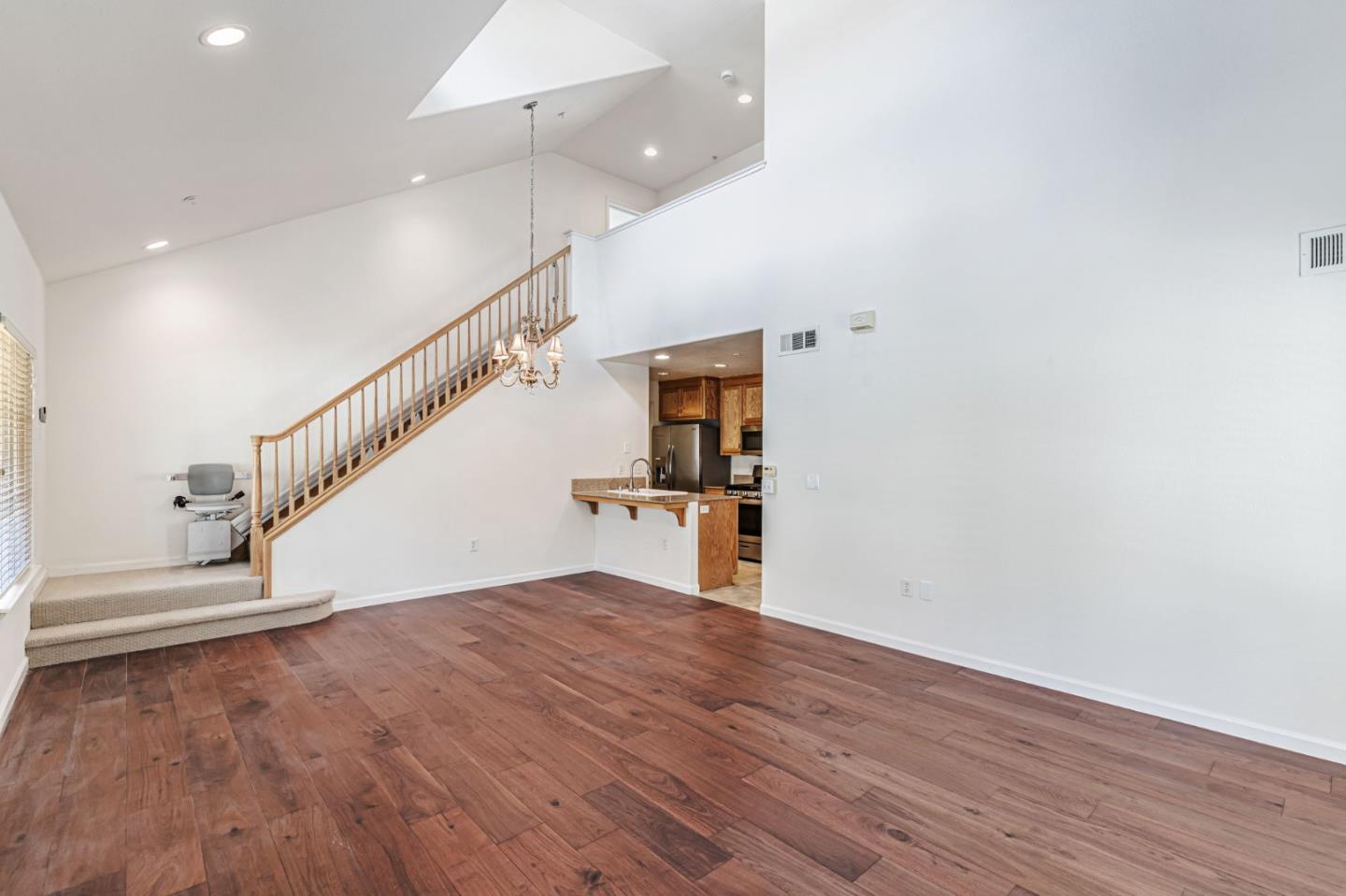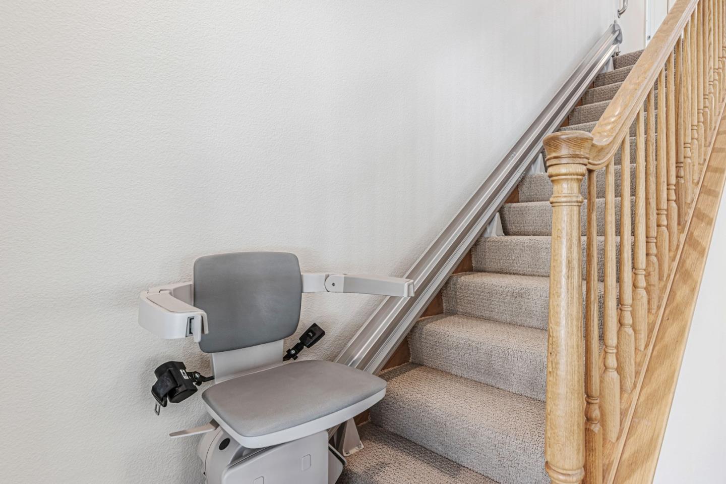 This beautifully maintained 3 BD/2BA home offering 1,293 sq. ft. of thoughtfully designed living space is nestled in Gilroy's sought-after gated senior community, Village Green. The bright & airy great room features vaulted ceilings & abundant natural light, creating an inviting atmosphere for relaxation &entertaining. The kitchen boasts granite countertops & is equipped w/ essential appliances, including a refrigerator, oven range, & dishwasher, catering to all your culinary needs. The homes layout includes a convenient ground-floor primary bedroom & bathroom. The upstairs bedrooms are accessible via a chair lift, enhancing mobility & ease of access. Bathrooms are thoughtfully designed w/handrails for added safety. Additional features include mirrored closet doors, a security screen door, & built-in storage in the garage. The in-garage laundry area comes complete w/ a washer & dryer, which stay with the home. Enjoy the west-facing patio that offers plenty of sunlight, perfect for outdoor relaxation. Village Green provides an array of amenities tailored for active seniors, including a pool, gym, recreation room, & beautifully landscaped parks w/ tranquil fountains and benches. The community's serene environment & well-maintained facilities make it an ideal place to call home.