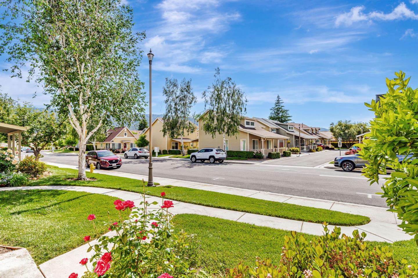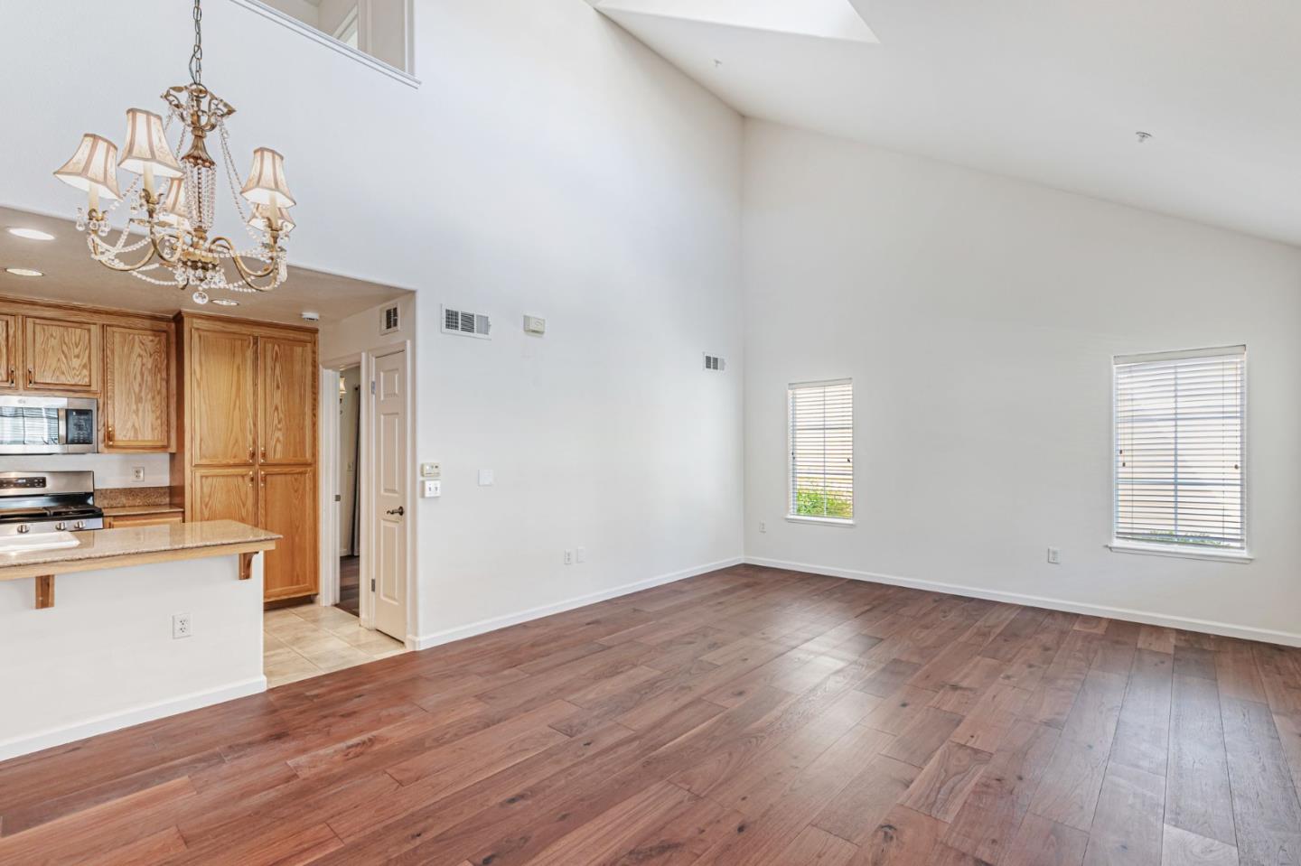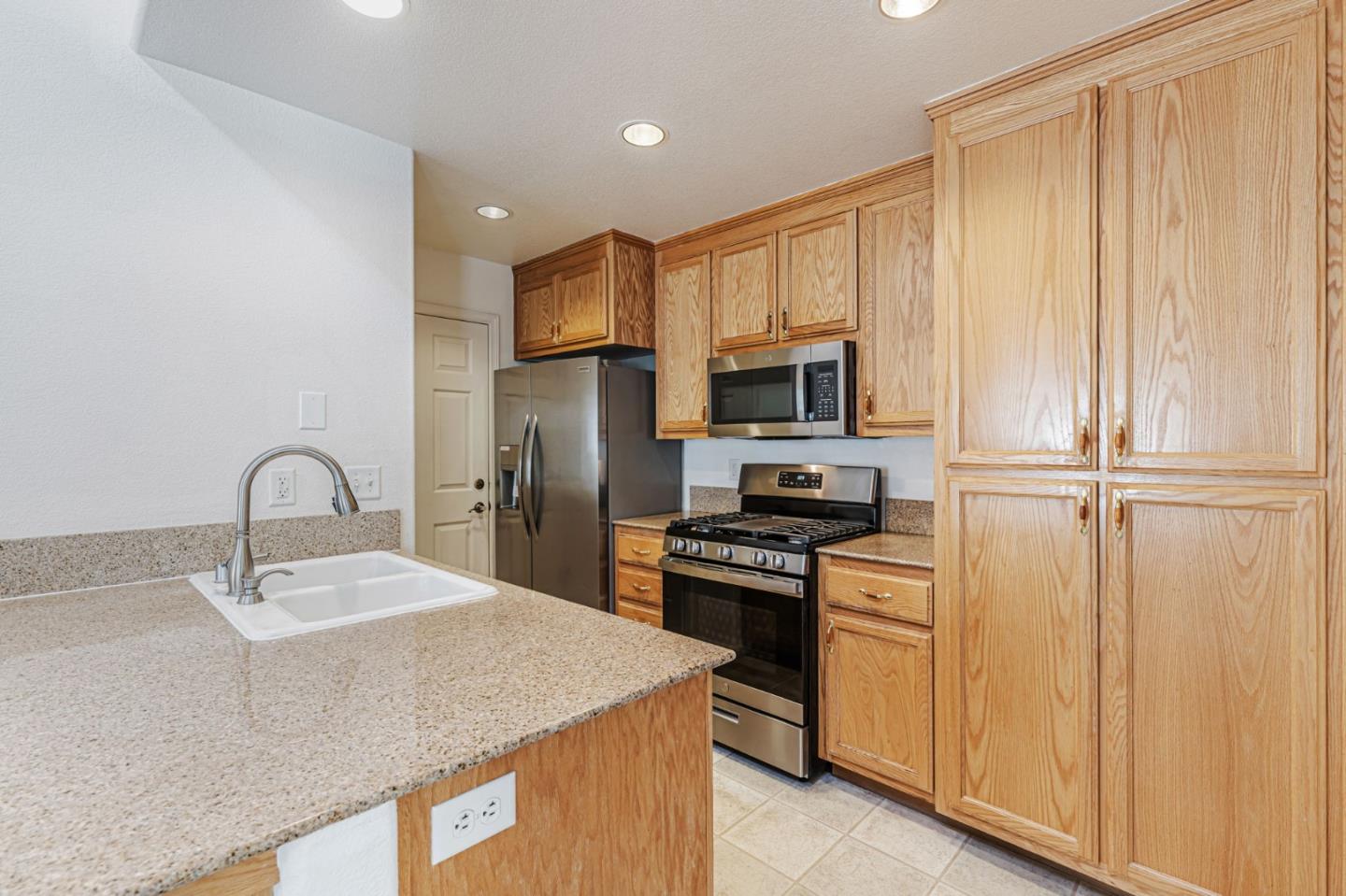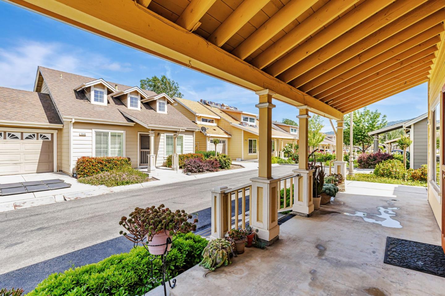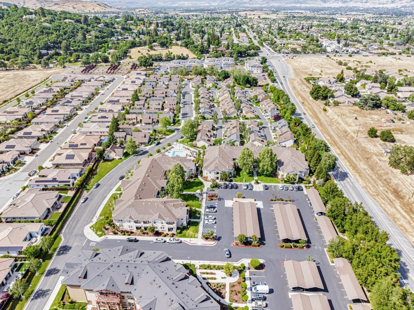 This beautifully maintained 3 BD/2BA home offering 1,293 sq. ft. of thoughtfully designed living space is nestled in Gilroy's sought-after gated senior community, Village Green. The bright & airy great room features vaulted ceilings & abundant natural light, creating an inviting atmosphere for relaxation &entertaining. The kitchen boasts granite countertops & is equipped w/ essential appliances, including a refrigerator, oven range, & dishwasher, catering to all your culinary needs. The homes layout includes a convenient ground-floor primary bedroom & bathroom. The upstairs bedrooms are accessible via a chair lift, enhancing mobility & ease of access. Bathrooms are thoughtfully designed w/handrails for added safety. Additional features include mirrored closet doors, a security screen door, & built-in storage in the garage. The in-garage laundry area comes complete w/ a washer & dryer, which stay with the home. Enjoy the west-facing patio that offers plenty of sunlight, perfect for outdoor relaxation. Village Green provides an array of amenities tailored for active seniors, including a pool, gym, recreation room, & beautifully landscaped parks w/ tranquil fountains and benches. The community's serene environment & well-maintained facilities make it an ideal place to call home.