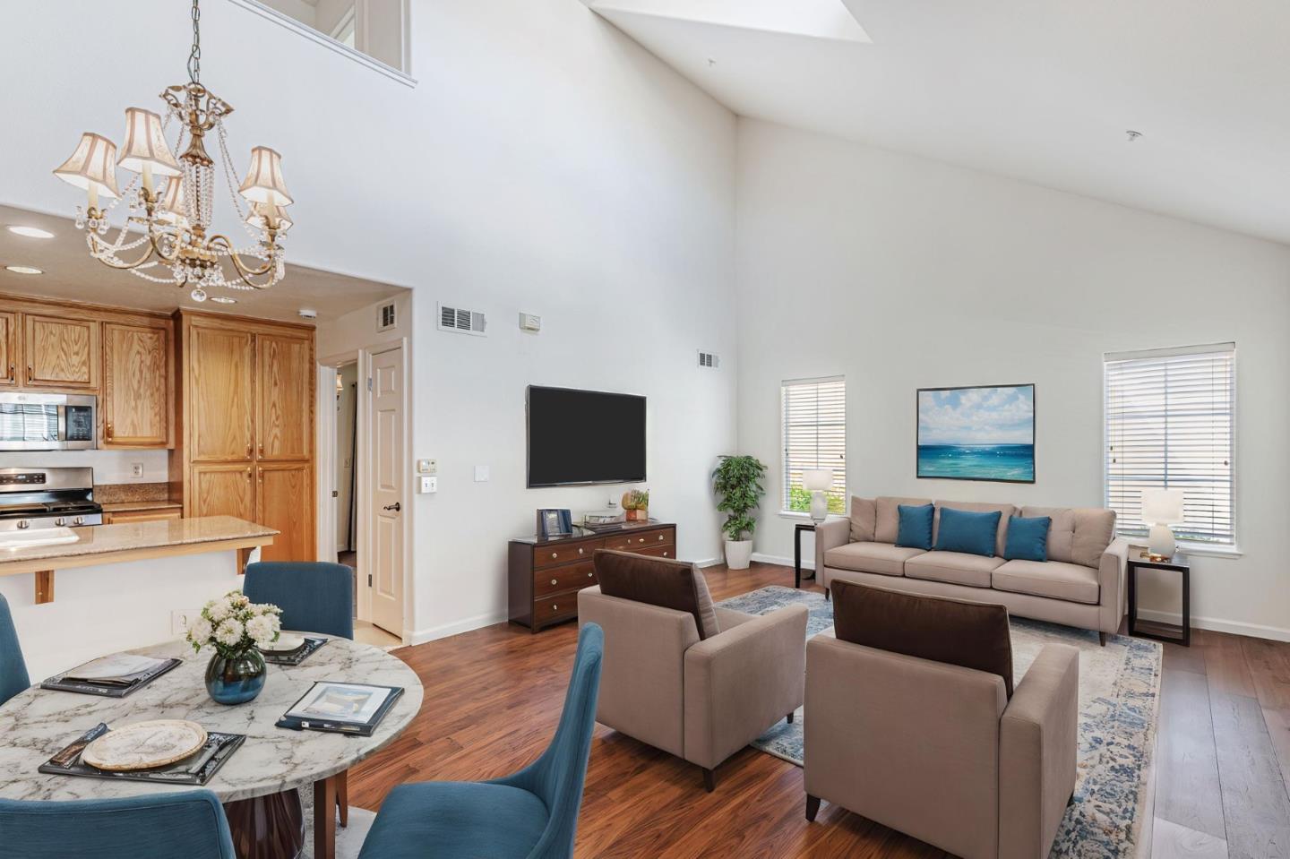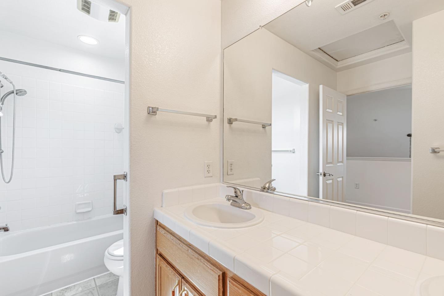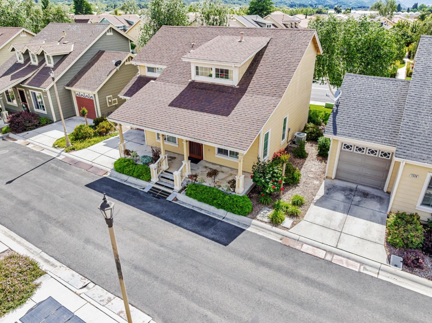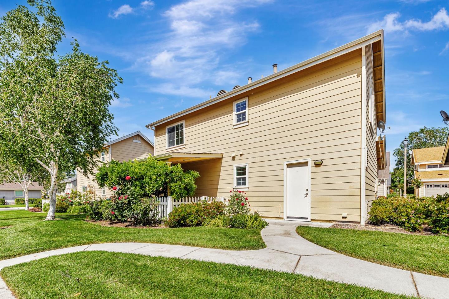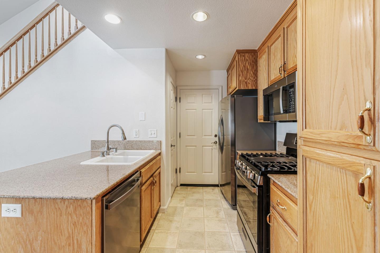 This beautifully maintained 3 BD/2BA home offering 1,293 sq. ft. of thoughtfully designed living space is nestled in Gilroy's sought-after gated senior community, Village Green. The bright & airy great room features vaulted ceilings & abundant natural light, creating an inviting atmosphere for relaxation &entertaining. The kitchen boasts granite countertops & is equipped w/ essential appliances, including a refrigerator, oven range, & dishwasher, catering to all your culinary needs. The homes layout includes a convenient ground-floor primary bedroom & bathroom. The upstairs bedrooms are accessible via a chair lift, enhancing mobility & ease of access. Bathrooms are thoughtfully designed w/handrails for added safety. Additional features include mirrored closet doors, a security screen door, & built-in storage in the garage. The in-garage laundry area comes complete w/ a washer & dryer, which stay with the home. Enjoy the west-facing patio that offers plenty of sunlight, perfect for outdoor relaxation. Village Green provides an array of amenities tailored for active seniors, including a pool, gym, recreation room, & beautifully landscaped parks w/ tranquil fountains and benches. The community's serene environment & well-maintained facilities make it an ideal place to call home.