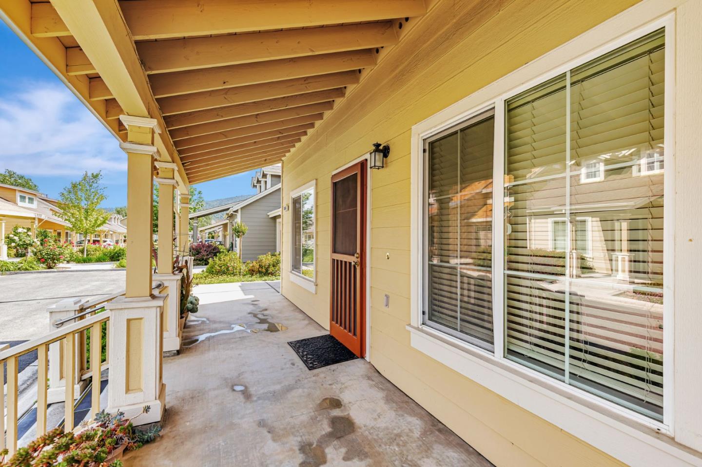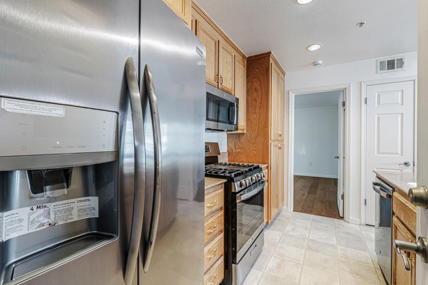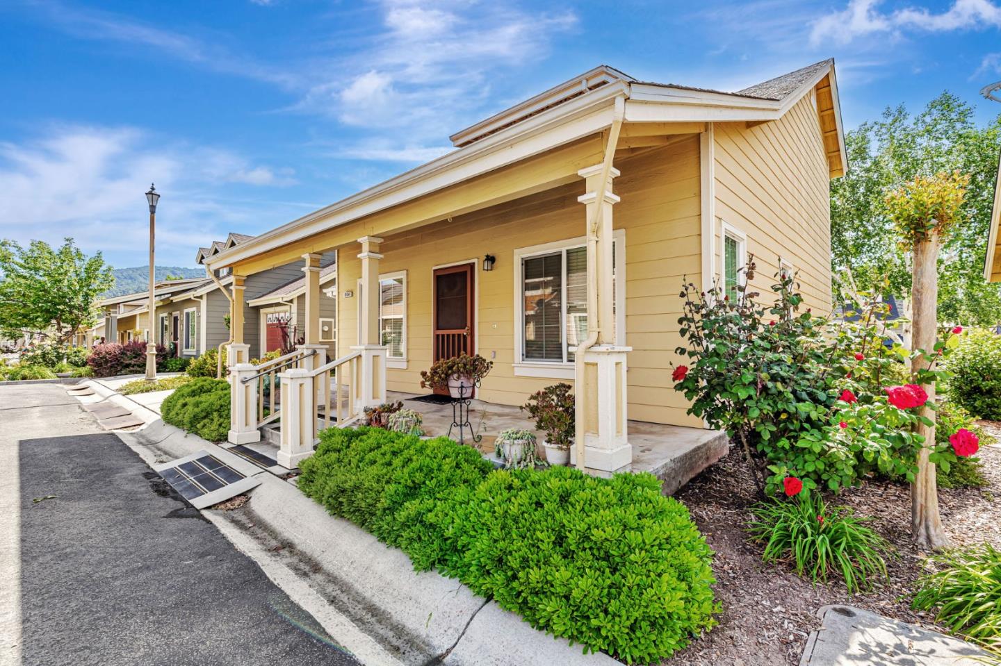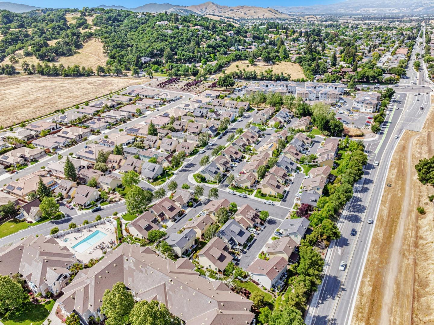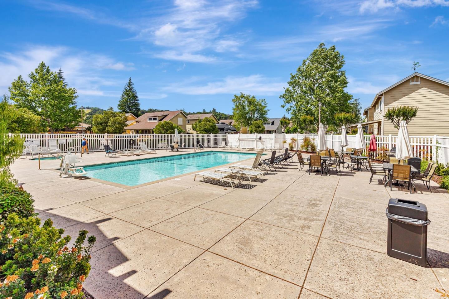 This beautifully maintained 3 BD/2BA home offering 1,293 sq. ft. of thoughtfully designed living space is nestled in Gilroy's sought-after gated senior community, Village Green. The bright & airy great room features vaulted ceilings & abundant natural light, creating an inviting atmosphere for relaxation &entertaining. The kitchen boasts granite countertops & is equipped w/ essential appliances, including a refrigerator, oven range, & dishwasher, catering to all your culinary needs. The homes layout includes a convenient ground-floor primary bedroom & bathroom. The upstairs bedrooms are accessible via a chair lift, enhancing mobility & ease of access. Bathrooms are thoughtfully designed w/handrails for added safety. Additional features include mirrored closet doors, a security screen door, & built-in storage in the garage. The in-garage laundry area comes complete w/ a washer & dryer, which stay with the home. Enjoy the west-facing patio that offers plenty of sunlight, perfect for outdoor relaxation. Village Green provides an array of amenities tailored for active seniors, including a pool, gym, recreation room, & beautifully landscaped parks w/ tranquil fountains and benches. The community's serene environment & well-maintained facilities make it an ideal place to call home.
