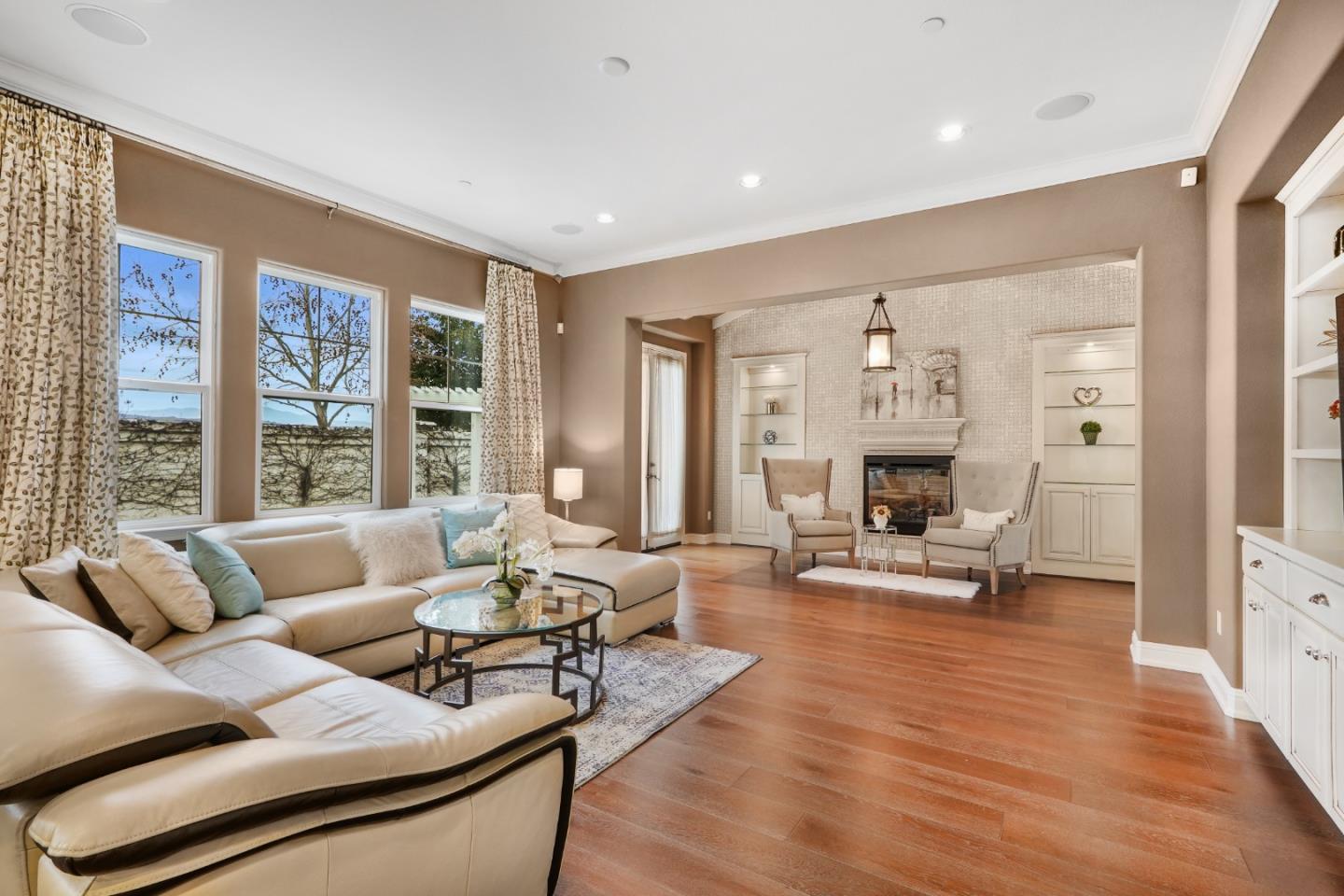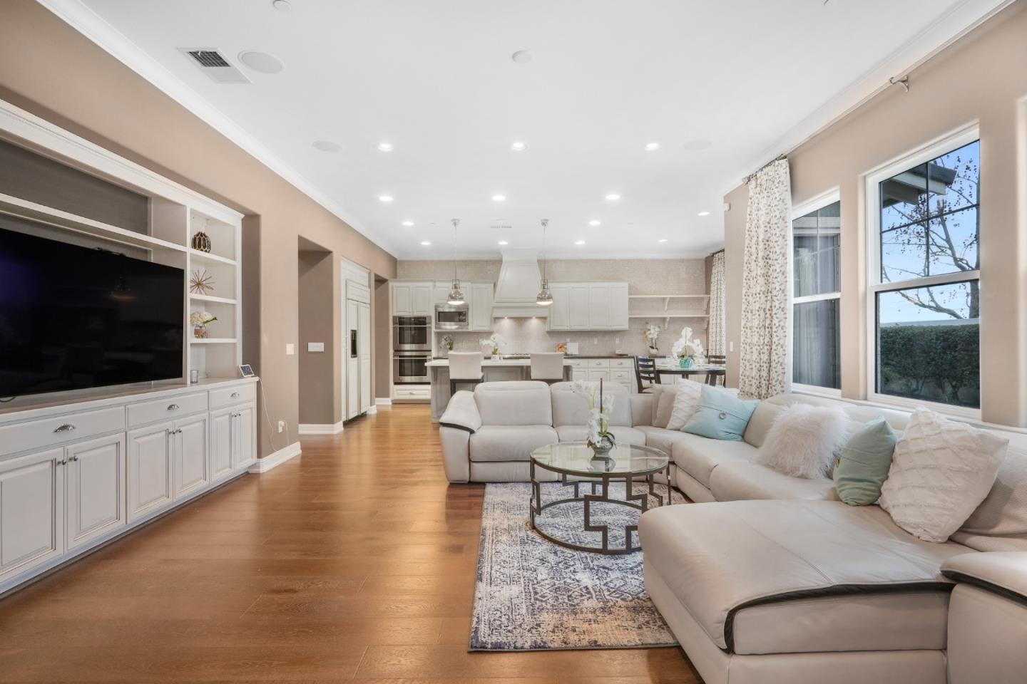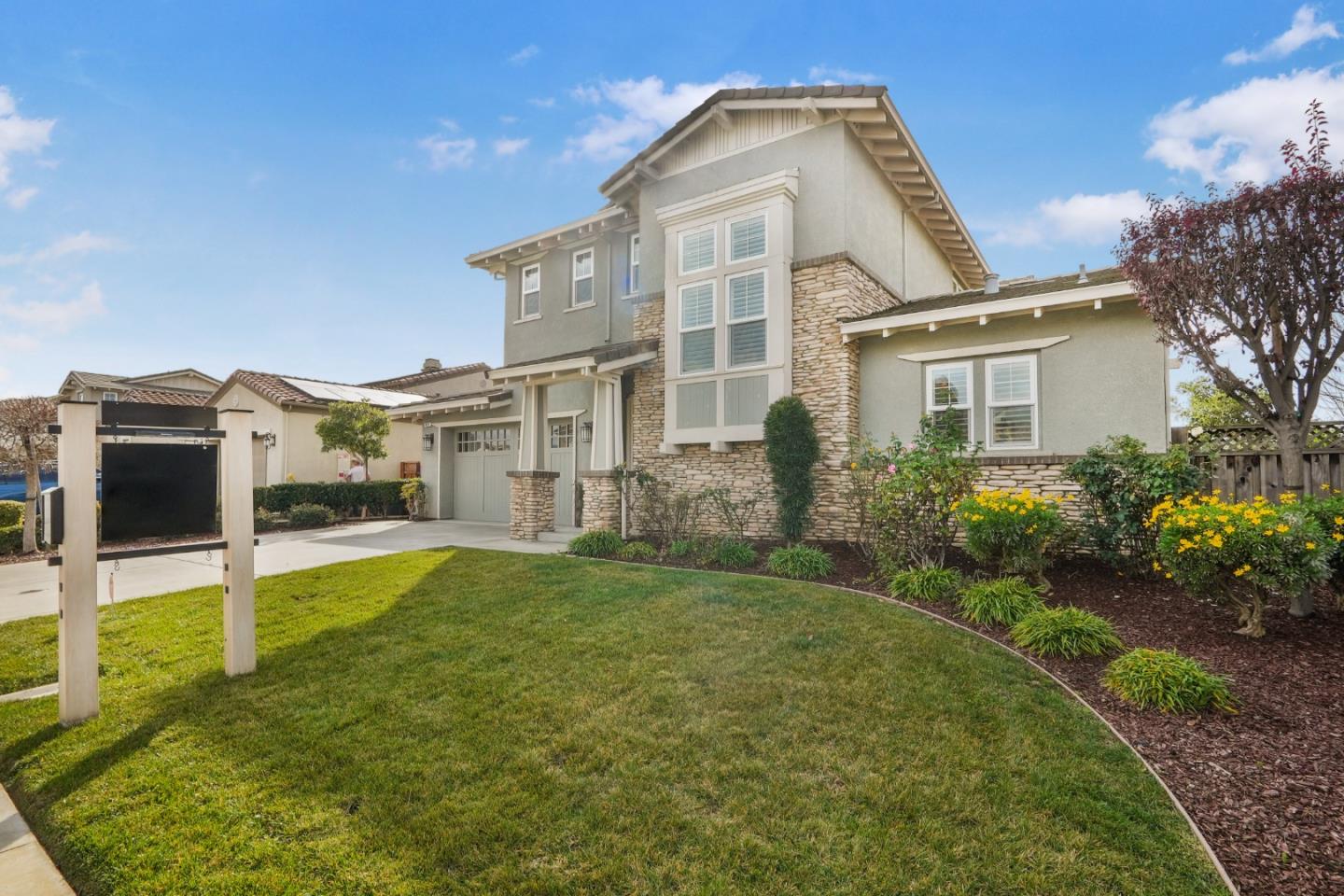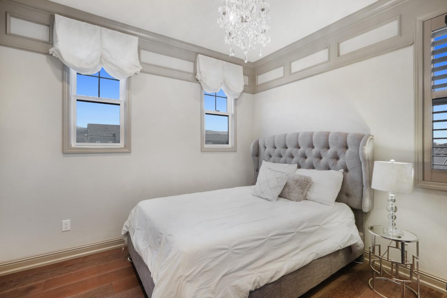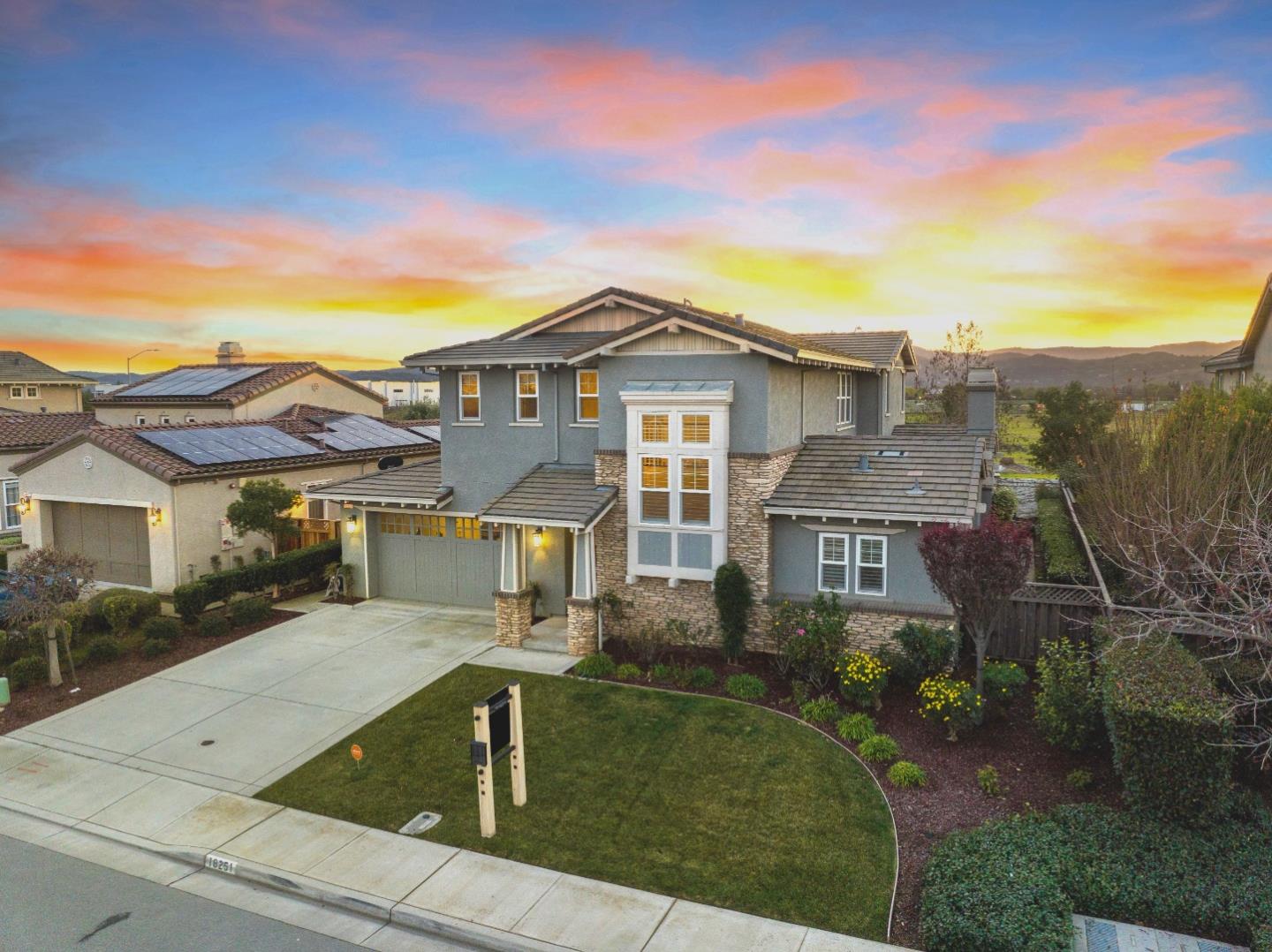 Welcome to 18251 Tolusa Place located in the prestigious neighborhood Terra Mia in Morgan Hill. This stunning former model home offers 4 bedrooms, 4 bathrooms, open loft / den (5th bedroom) and exquisite modern touches throughout. Stunning entry with floor to ceiling palace style wainscoting, plantation shutters, custom molding throughout, every detail exudes elegance. Separate Family Room boasts floor-to-ceiling windows, vaulted ceilings and a captivating fireplace with tile accent wall and custom cabinets. Formal Dining Room. Chefs kitchen is a culinary dream equipped with top of the line appliances, custom cabinetry, huge island w sink, quartz countertops, built in refrigerator w huge custom walk in pantry. Primary suite offers a shiplap ceiling, large walk-in closet and gorgeous marble bathroom w dual sinks, soaking tub and separate shower stall. Downstairs suite with full bath,OWNED SOLAR, Tesla Charger ,2 Car Garage, huge laundry room & hardwood floors. Surrounded by 3 parks, hiking and biking trails and top rated schools.Close proximity to 101 freeway and a short drive to our beautiful downtown with fine dining and shopping. This home is a true masterpiece, combining exquisite design, impeccable craftsmanship, and a prime location.