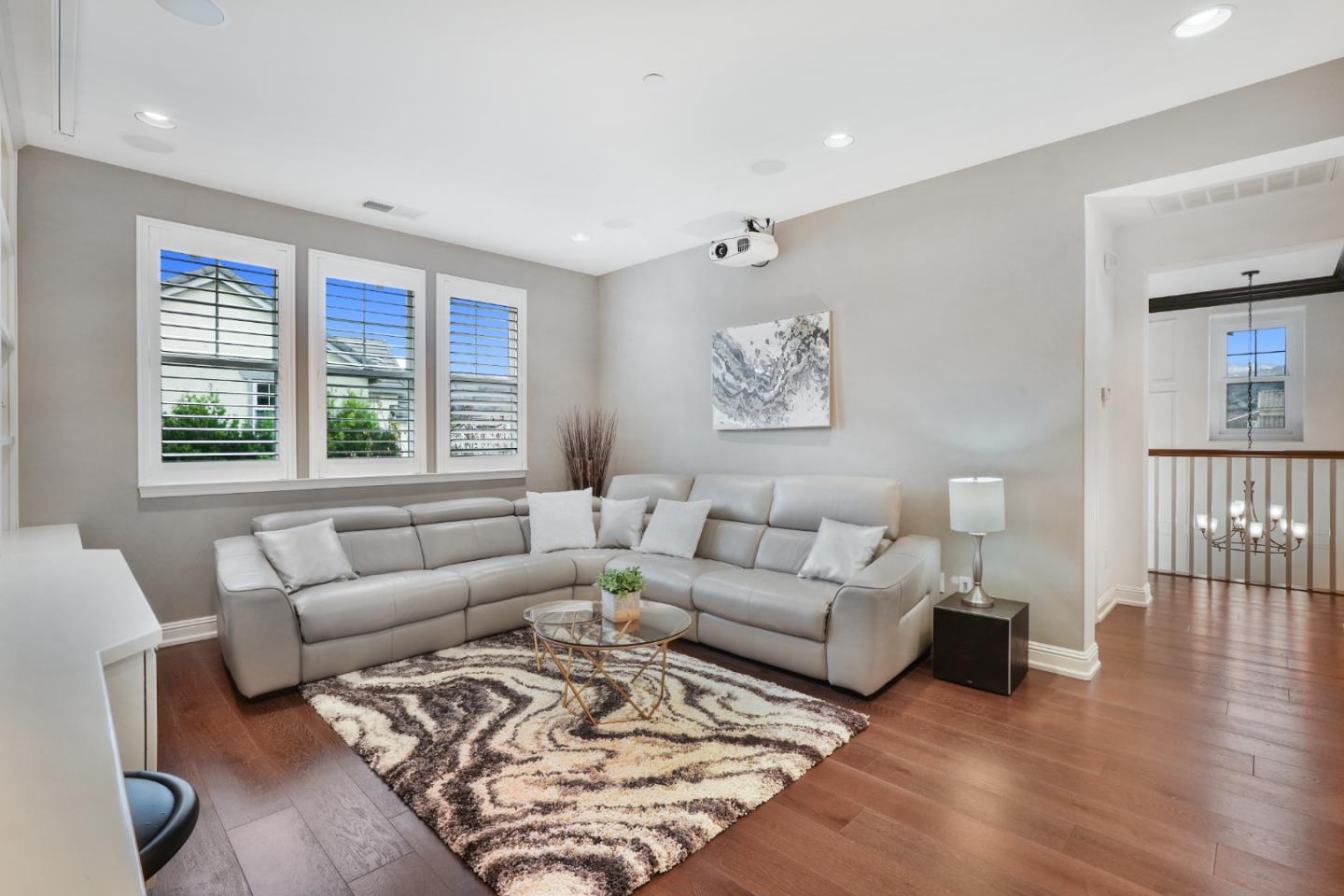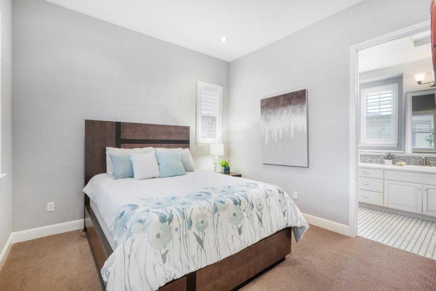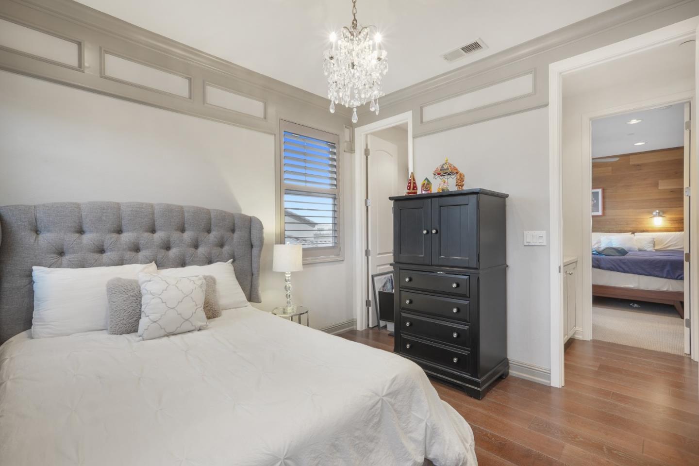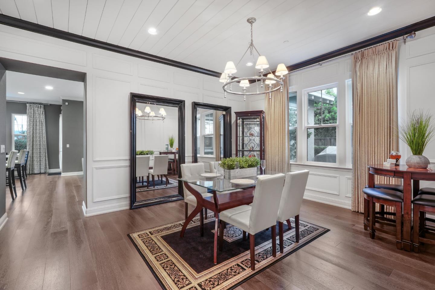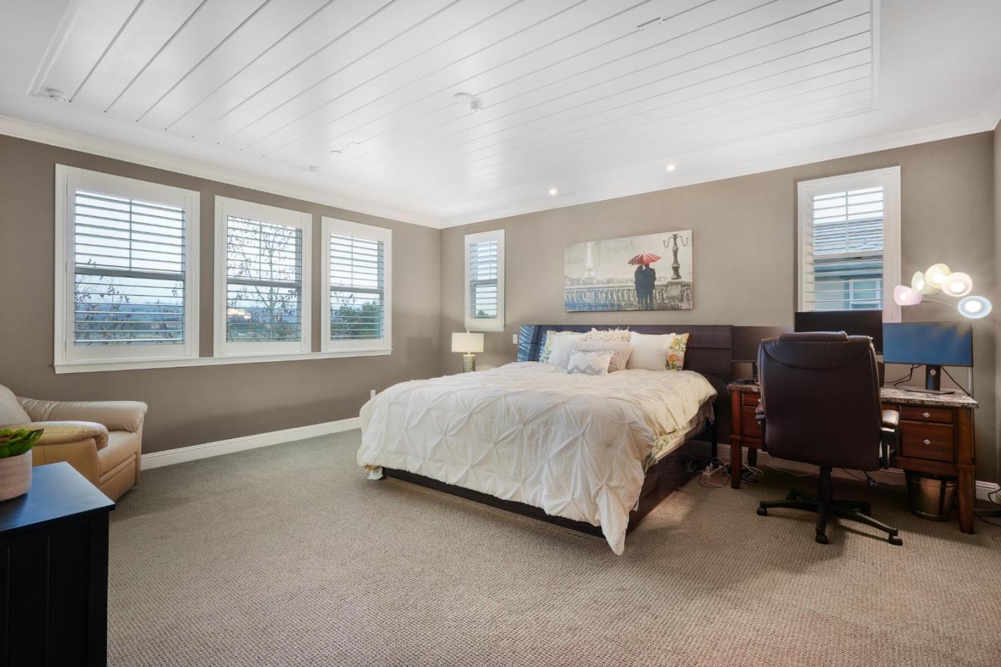 Welcome to 18251 Tolusa Place located in the prestigious neighborhood Terra Mia in Morgan Hill. This stunning former model home offers 4 bedrooms, 4 bathrooms, open loft / den (5th bedroom) and exquisite modern touches throughout. Stunning entry with floor to ceiling palace style wainscoting, plantation shutters, custom molding throughout, every detail exudes elegance. Separate Family Room boasts floor-to-ceiling windows, vaulted ceilings and a captivating fireplace with tile accent wall and custom cabinets. Formal Dining Room. Chefs kitchen is a culinary dream equipped with top of the line appliances, custom cabinetry, huge island w sink, quartz countertops, built in refrigerator w huge custom walk in pantry. Primary suite offers a shiplap ceiling, large walk-in closet and gorgeous marble bathroom w dual sinks, soaking tub and separate shower stall. Downstairs suite with full bath,OWNED SOLAR, Tesla Charger ,2 Car Garage, huge laundry room & hardwood floors. Surrounded by 3 parks, hiking and biking trails and top rated schools.Close proximity to 101 freeway and a short drive to our beautiful downtown with fine dining and shopping. This home is a true masterpiece, combining exquisite design, impeccable craftsmanship, and a prime location.