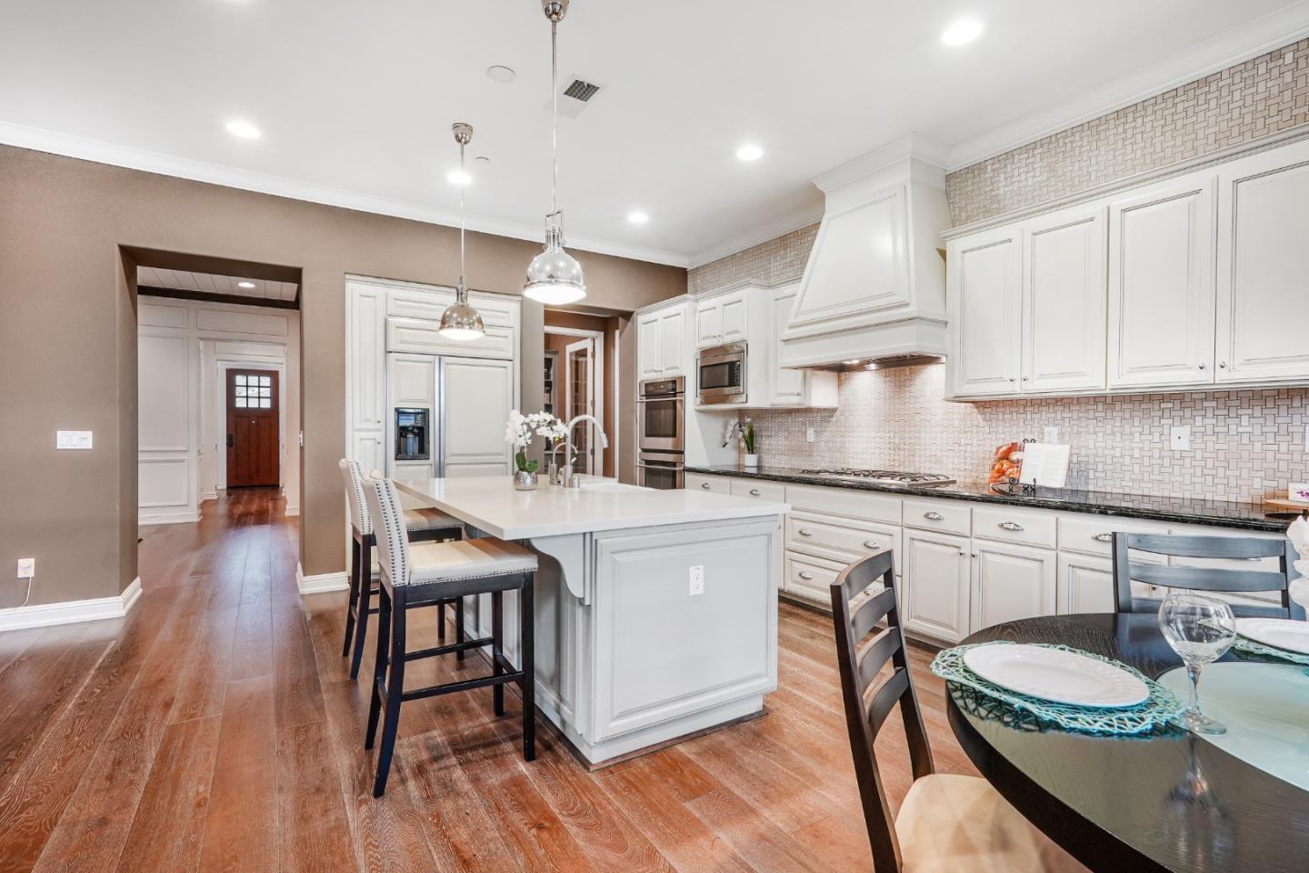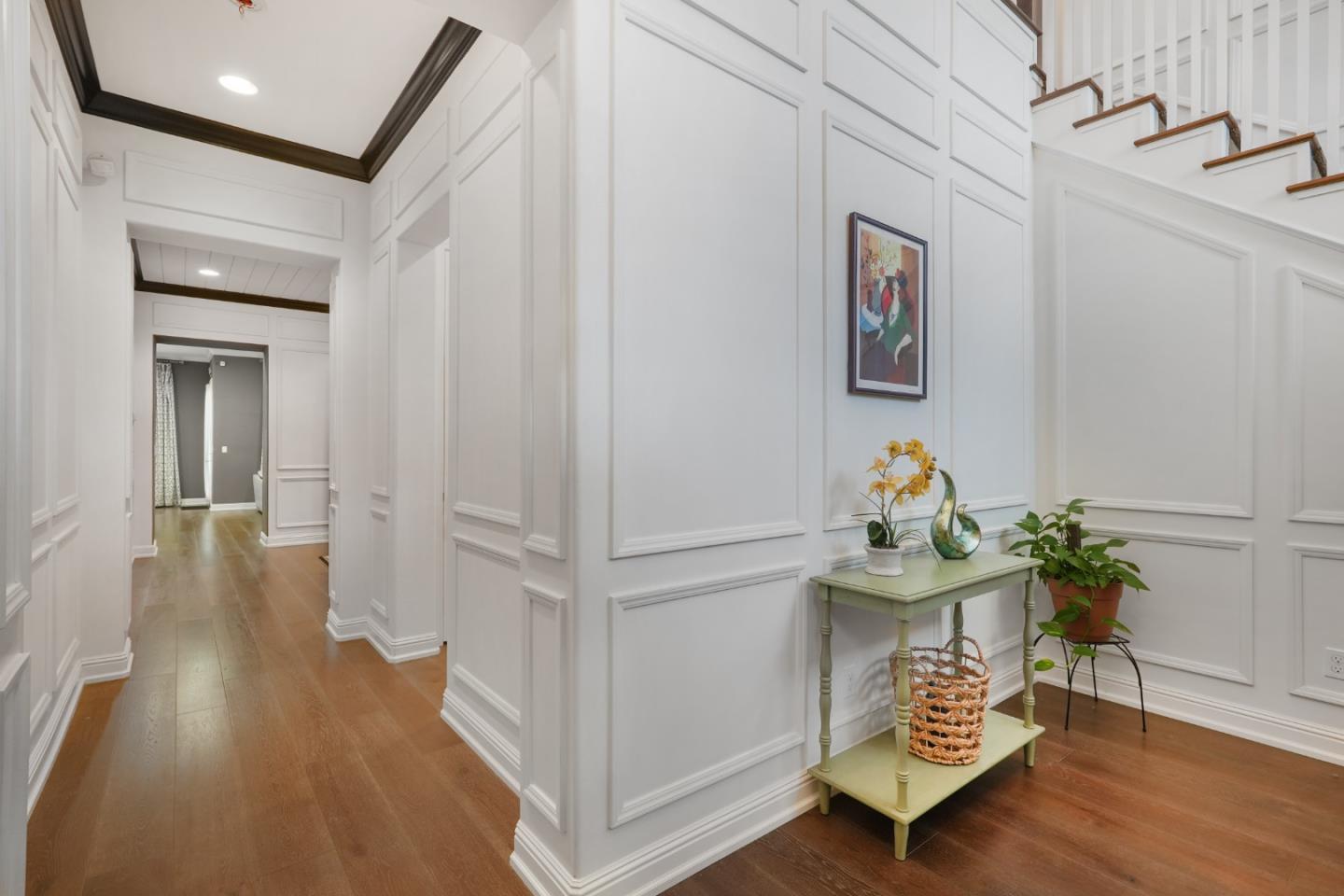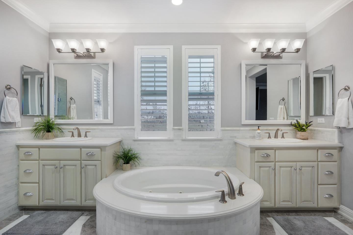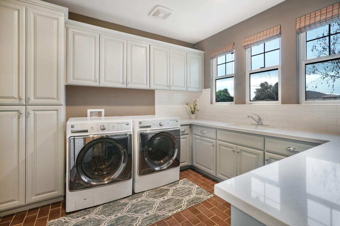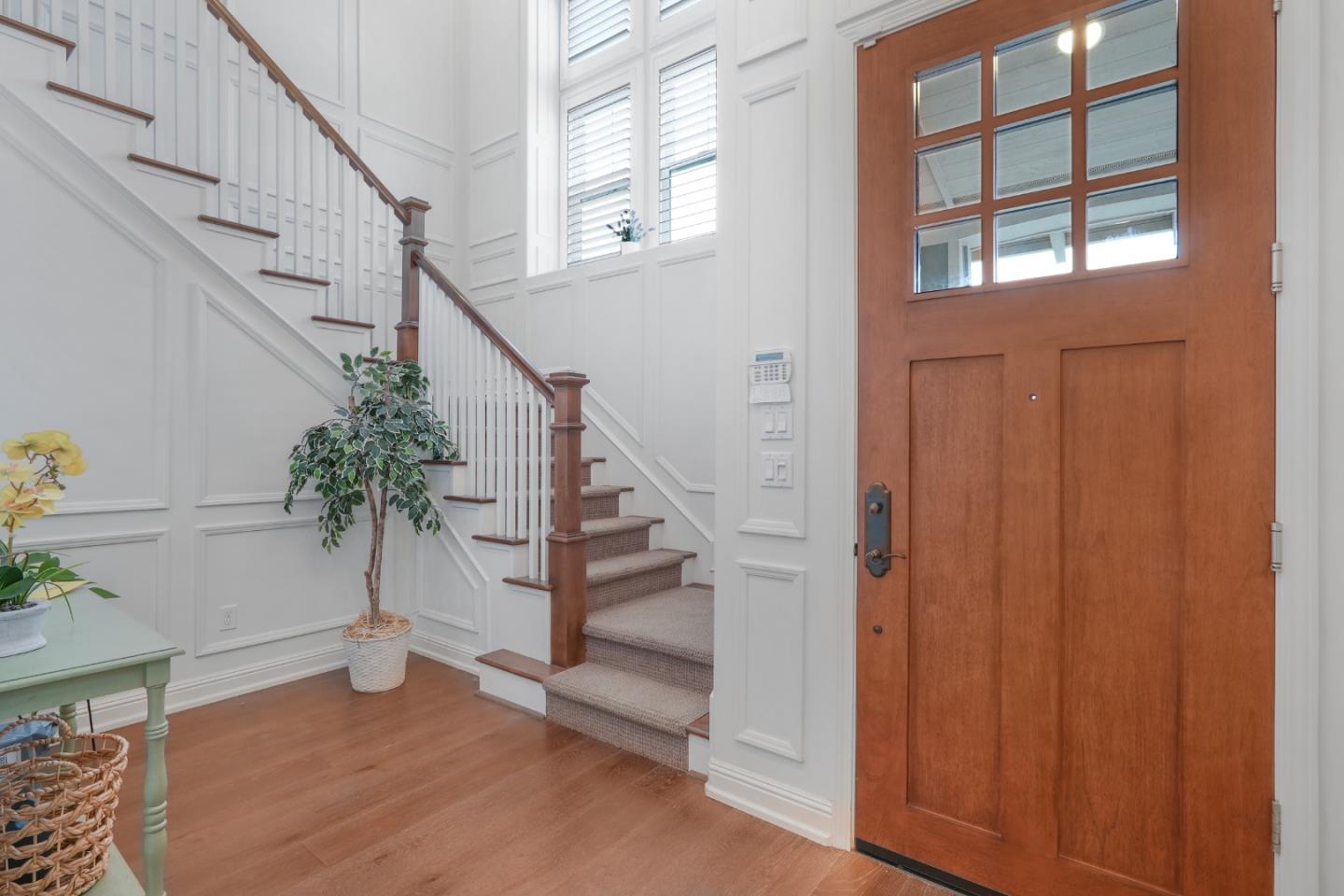 Welcome to 18251 Tolusa Place located in the prestigious neighborhood Terra Mia in Morgan Hill. This stunning former model home offers 4 bedrooms, 4 bathrooms, open loft / den (5th bedroom) and exquisite modern touches throughout. Stunning entry with floor to ceiling palace style wainscoting, plantation shutters, custom molding throughout, every detail exudes elegance. Separate Family Room boasts floor-to-ceiling windows, vaulted ceilings and a captivating fireplace with tile accent wall and custom cabinets. Formal Dining Room. Chefs kitchen is a culinary dream equipped with top of the line appliances, custom cabinetry, huge island w sink, quartz countertops, built in refrigerator w huge custom walk in pantry. Primary suite offers a shiplap ceiling, large walk-in closet and gorgeous marble bathroom w dual sinks, soaking tub and separate shower stall. Downstairs suite with full bath,OWNED SOLAR, Tesla Charger ,2 Car Garage, huge laundry room & hardwood floors. Surrounded by 3 parks, hiking and biking trails and top rated schools.Close proximity to 101 freeway and a short drive to our beautiful downtown with fine dining and shopping. This home is a true masterpiece, combining exquisite design, impeccable craftsmanship, and a prime location.
