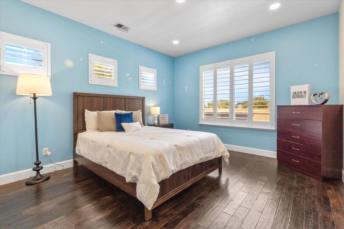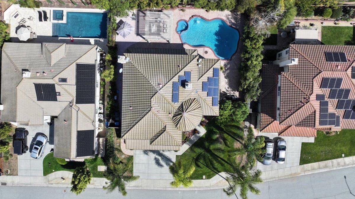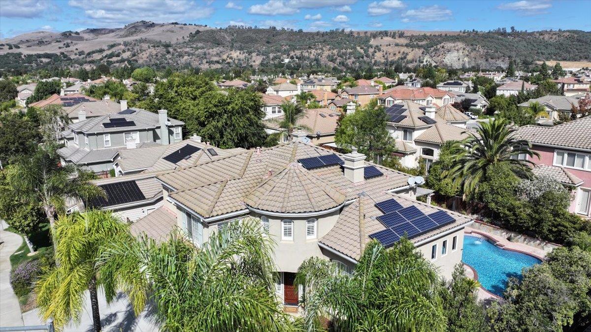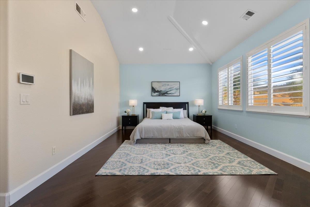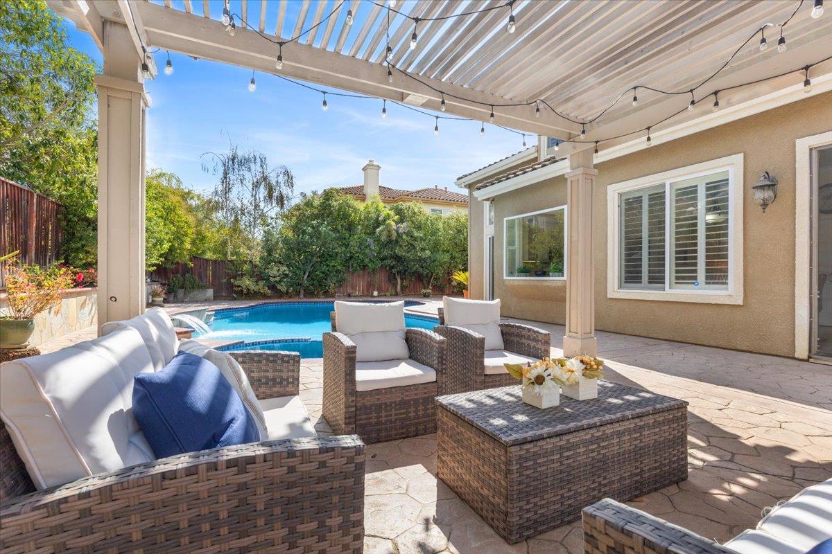 Welcome to your dream home in the highly sought after neighborhood of Mission Ranch. This stunning 5 bdrm, 3.5-bath gem spans 3,401 sqft on a 9,234 sqft lot. Impeccably designed, with an open floor plan, vaulted ceilings, wood floors, recessed lighting and an abundance of natural light. The main level features a large bedroom with en-suite bath, separate family room and an elegant formal dining room ideal for memorable gatherings. The chefs kitchen dazzles with SS appliances, granite countertops, island, wine fridge,double ovens & butlers pantry. Upstairs find 3 additional bedrooms, including a luxurious primary en-suite and bath, loft or (5th bdrm) and a dedicated office space. Outside, a backyard oasis awaits you, complete with a covered patio, lush landscaping, a heated pool and jacuzzi creating an ideal setting for entertaining and plenty of relaxation. Eco-friendly features include owned solar and an EV charger in your 3 car garage. Steps away, enjoy a community park with tennis and basketball courts, pickleball, hiking and biking trails. Close to 101 freeway, ideal for commuters, and less than a mile from downtown Morgan Hill's vibrant restaurants and shops. Don't miss your opportunity to embrace the coveted Mission Ranch lifestyle in this exceptional home.