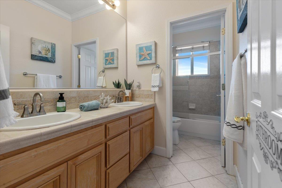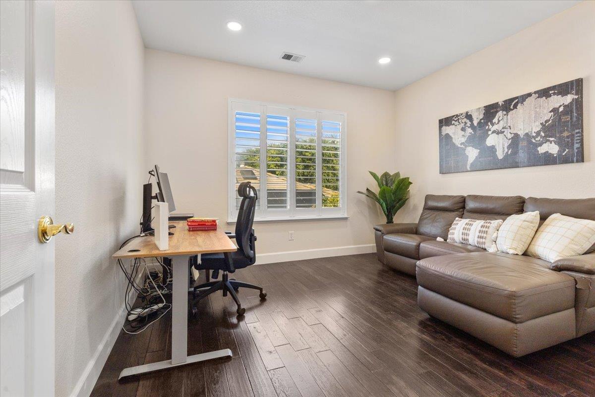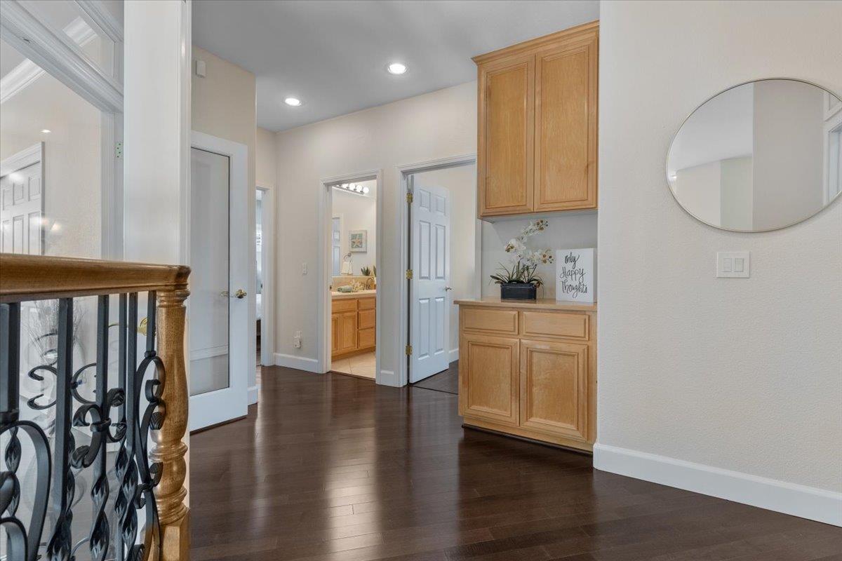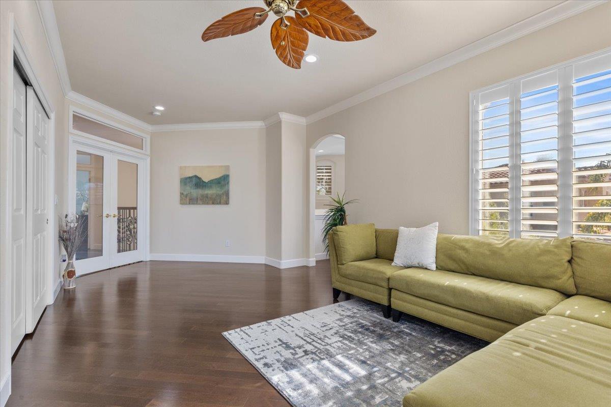 Welcome to your dream home in the highly sought after neighborhood of Mission Ranch. This stunning 5 bdrm, 3.5-bath gem spans 3,401 sqft on a 9,234 sqft lot. Impeccably designed, with an open floor plan, vaulted ceilings, wood floors, recessed lighting and an abundance of natural light. The main level features a large bedroom with en-suite bath, separate family room and an elegant formal dining room ideal for memorable gatherings. The chefs kitchen dazzles with SS appliances, granite countertops, island, wine fridge,double ovens & butlers pantry. Upstairs find 3 additional bedrooms, including a luxurious primary en-suite and bath, loft or (5th bdrm) and a dedicated office space. Outside, a backyard oasis awaits you, complete with a covered patio, lush landscaping, a heated pool and jacuzzi creating an ideal setting for entertaining and plenty of relaxation. Eco-friendly features include owned solar and an EV charger in your 3 car garage. Steps away, enjoy a community park with tennis and basketball courts, pickleball, hiking and biking trails. Close to 101 freeway, ideal for commuters, and less than a mile from downtown Morgan Hill's vibrant restaurants and shops. Don't miss your opportunity to embrace the coveted Mission Ranch lifestyle in this exceptional home.