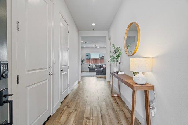 Absolutely Exquisite Newer Ranch Style 4-bed, 2 1/2-bath home on near 9,000 sf lot in the gated community of Ridgemark Golf & Country Club. Tennis and a Pickleball Club is within the Community too! The Home shows pride of ownership w/ many added features including Owned Solar-electric bills are next to nothing! Smart Home w/ Safe Haven Monitor to control the garage door, HVAC, front door lock and a future alarm system with this App, Custom front door with receded privacy glass, Ring Doorbell, LVP flooring throughout, Govee lights-dusk to dawn lanterns on exterior, extra shelves added to closets, overhead storage in the garage, Extra shelves added to bedrooms-linen and pantry, Energy efficient custom blinds, Minka air fans in bedrooms & extra large fan in the Family room, Pendent lights over island with chandelier above dining space, upgraded faucets throughout, pulls and knobs added to kitchen cabinets, added overhead cabinet in the laundry room, Life source water filtration system. Fully landscaped front & back with Olive trees with concrete patios back and side yard and Driveway Extension, Decomposed Granite golf cart path to large side yard, extra drainage and drip system added to backyard, weed barrier to all barked areas. Storage Shed. The Sellers thought of Everything!