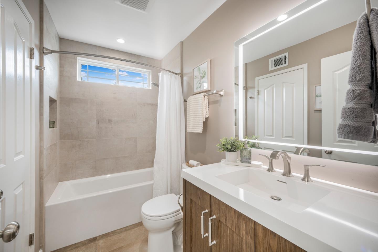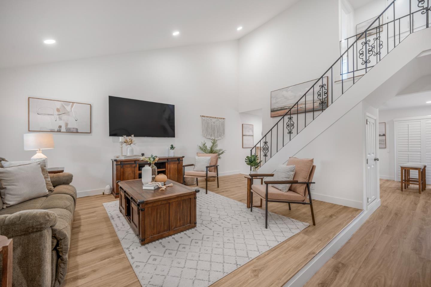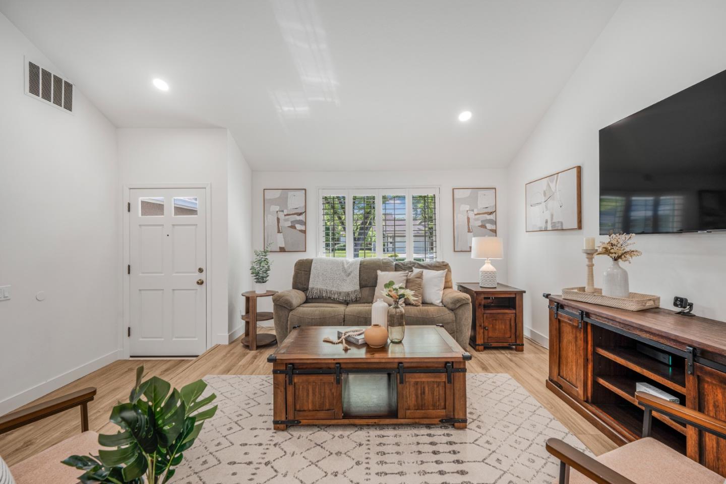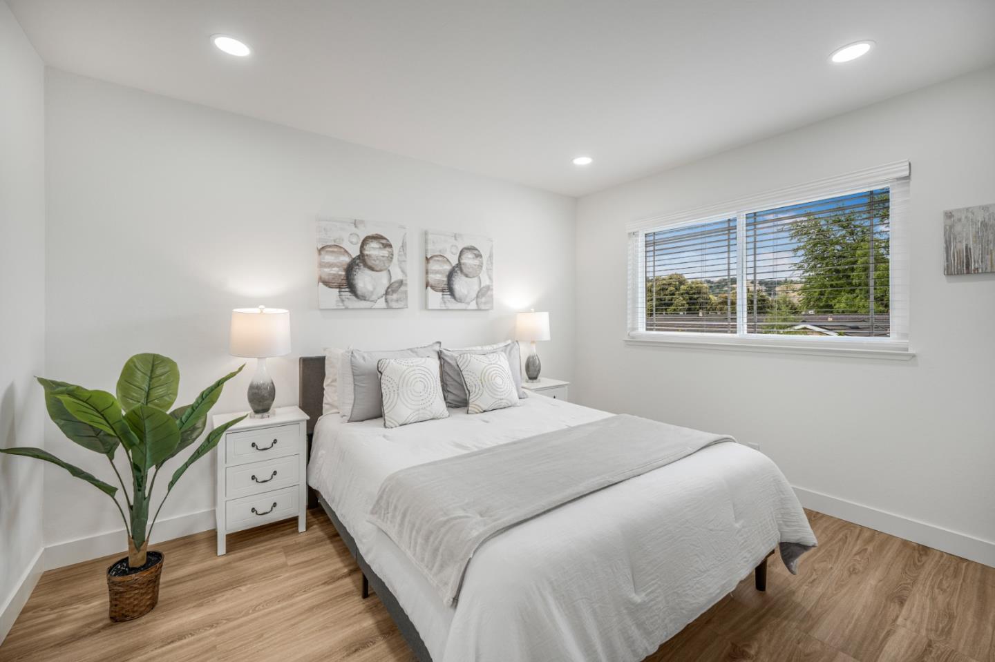 This thoughtfully remodeled 4 BD, 2 BA home offers 1,562 square feet of modern living space on a 5,500 square foot lot. Step inside to a bright and open floor plan featuring brand-new luxury vinyl plank flooring throughout and fresh interior paint that enhances the natural light. The convenient downstairs primary bedroom, offers comfort, privacy, and accessibility, ideal for multigenerational living or long-term flexibility. The fully remodeled kitchen is a chef's dream, showcasing sleek cabinetry, quartz countertops, backsplash and stainless steel appliances. The spacious living room features vaulted ceilings, while the adjoining family room includes a cozy fireplace perfect for everyday living and entertaining. Both bathrooms have been tastefully updated, complementing the homes clean, contemporary aesthetic. The backyard is private and well-maintained, with mature landscaping, artificial turf, and a patio area ideal for relaxing or hosting guests. Situated near the scenic Santa Teresa Foothills, this home offers close proximity to parks, trails, shopping, dining, and major commute routes including Highways 85, 87, and 101.