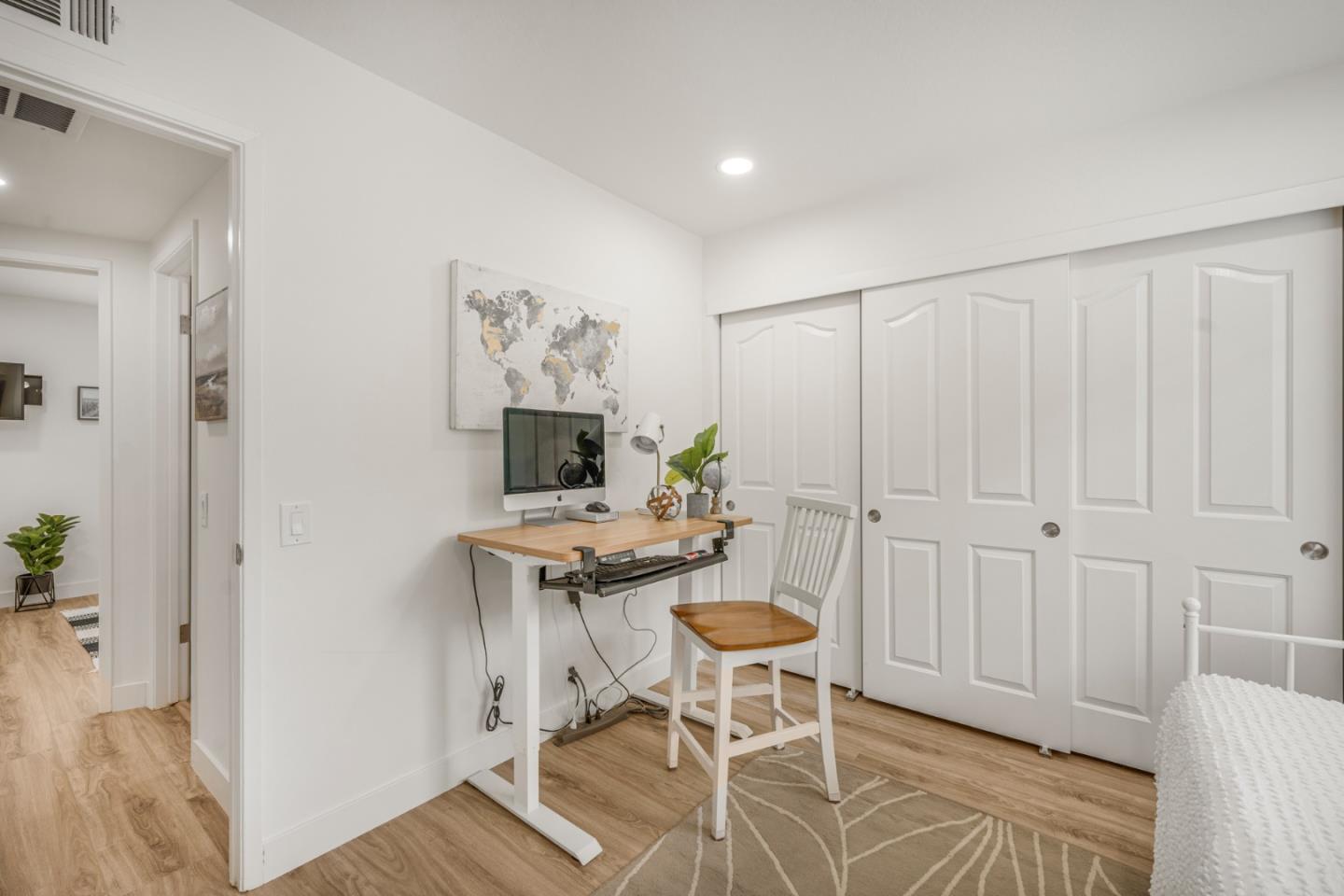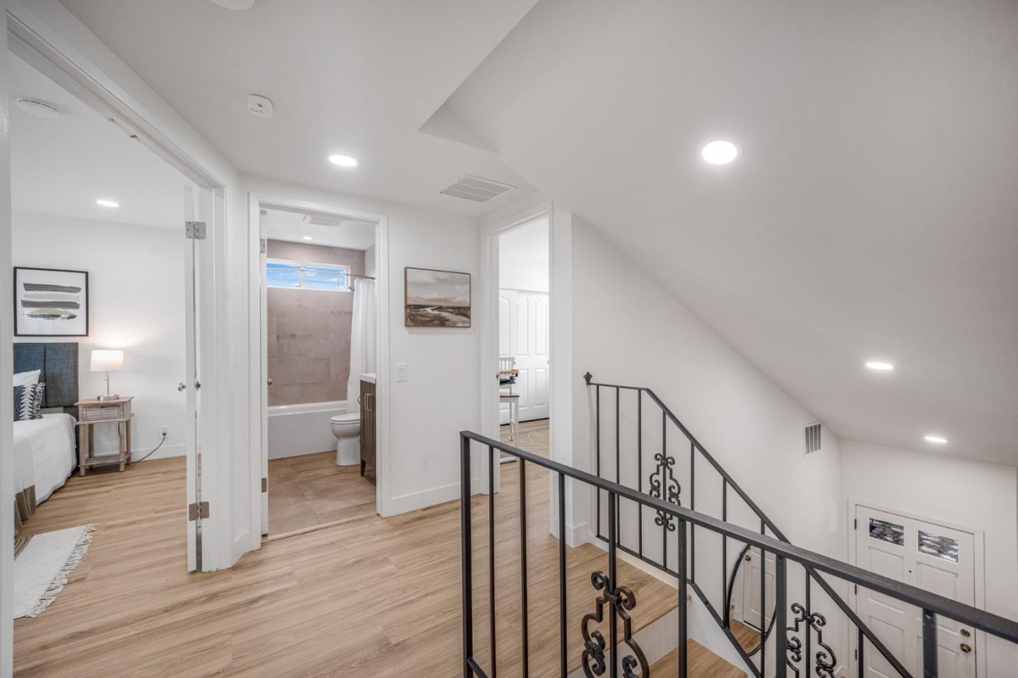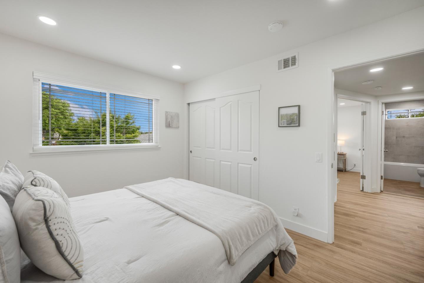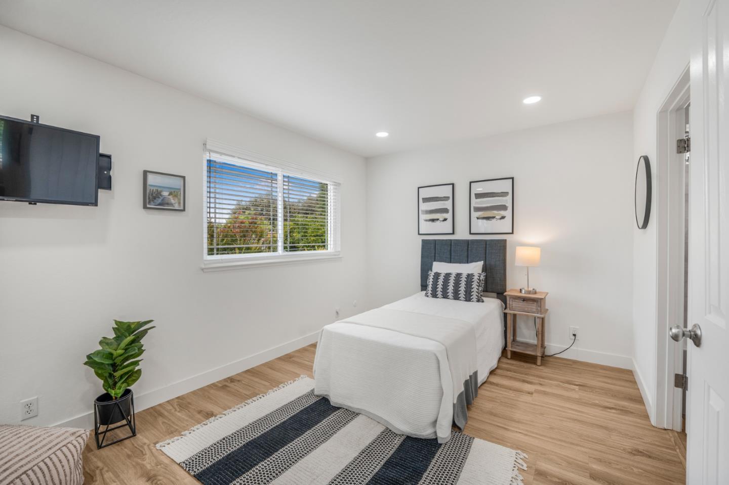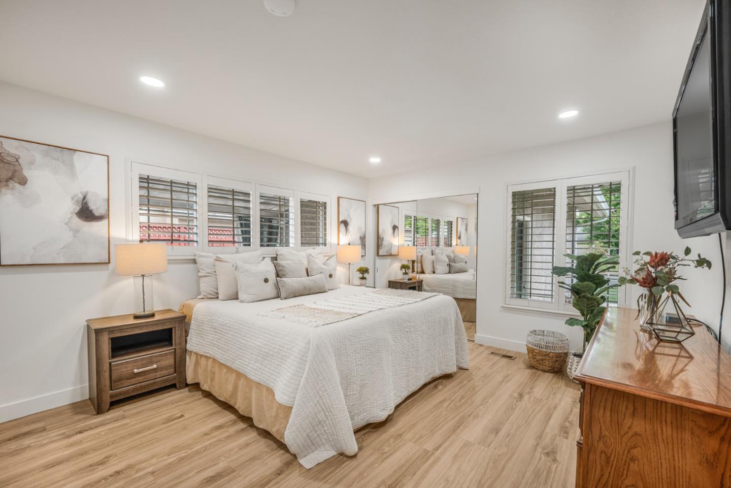 This thoughtfully remodeled 4 BD, 2 BA home offers 1,562 square feet of modern living space on a 5,500 square foot lot. Step inside to a bright and open floor plan featuring brand-new luxury vinyl plank flooring throughout and fresh interior paint that enhances the natural light. The convenient downstairs primary bedroom, offers comfort, privacy, and accessibility, ideal for multigenerational living or long-term flexibility. The fully remodeled kitchen is a chef's dream, showcasing sleek cabinetry, quartz countertops, backsplash and stainless steel appliances. The spacious living room features vaulted ceilings, while the adjoining family room includes a cozy fireplace perfect for everyday living and entertaining. Both bathrooms have been tastefully updated, complementing the homes clean, contemporary aesthetic. The backyard is private and well-maintained, with mature landscaping, artificial turf, and a patio area ideal for relaxing or hosting guests. Situated near the scenic Santa Teresa Foothills, this home offers close proximity to parks, trails, shopping, dining, and major commute routes including Highways 85, 87, and 101.