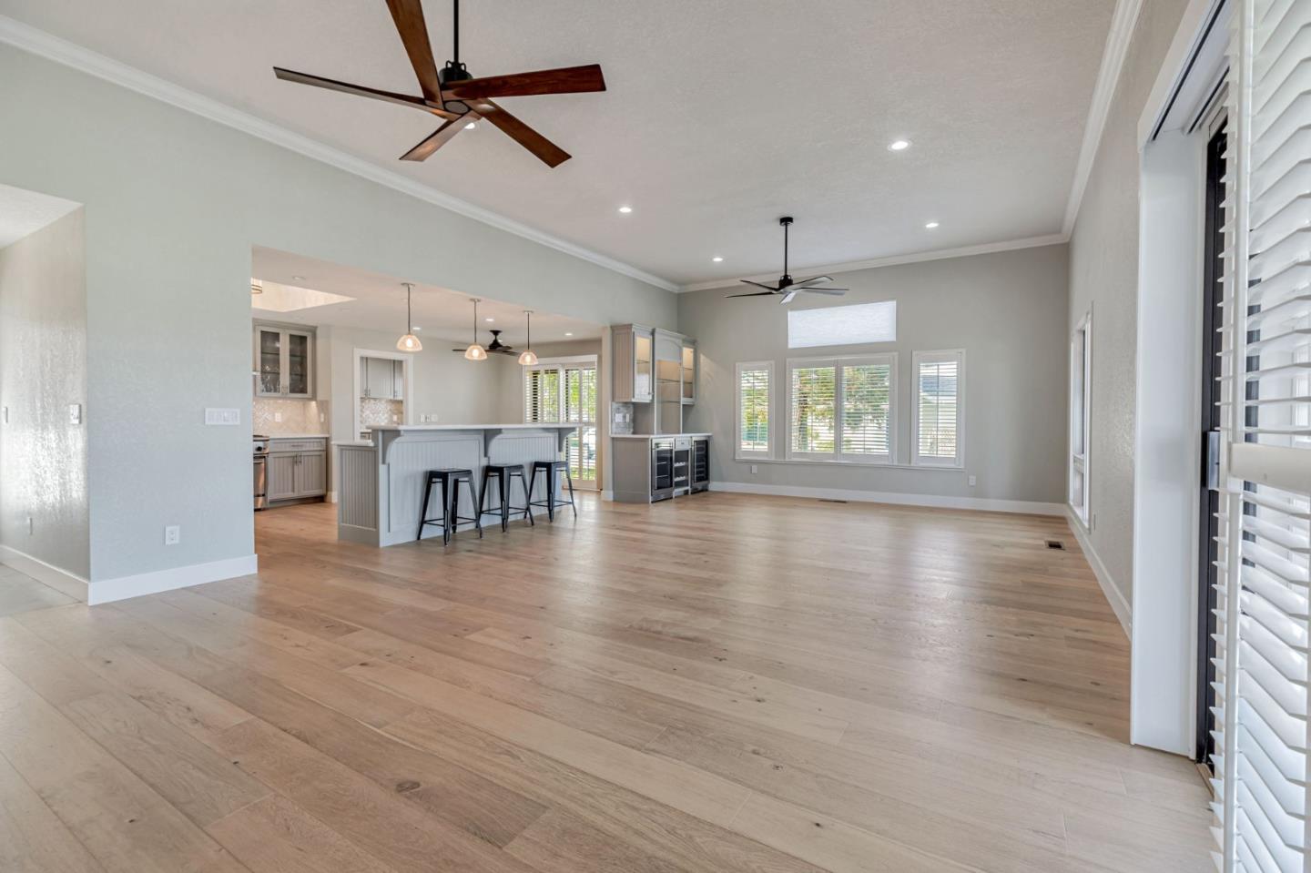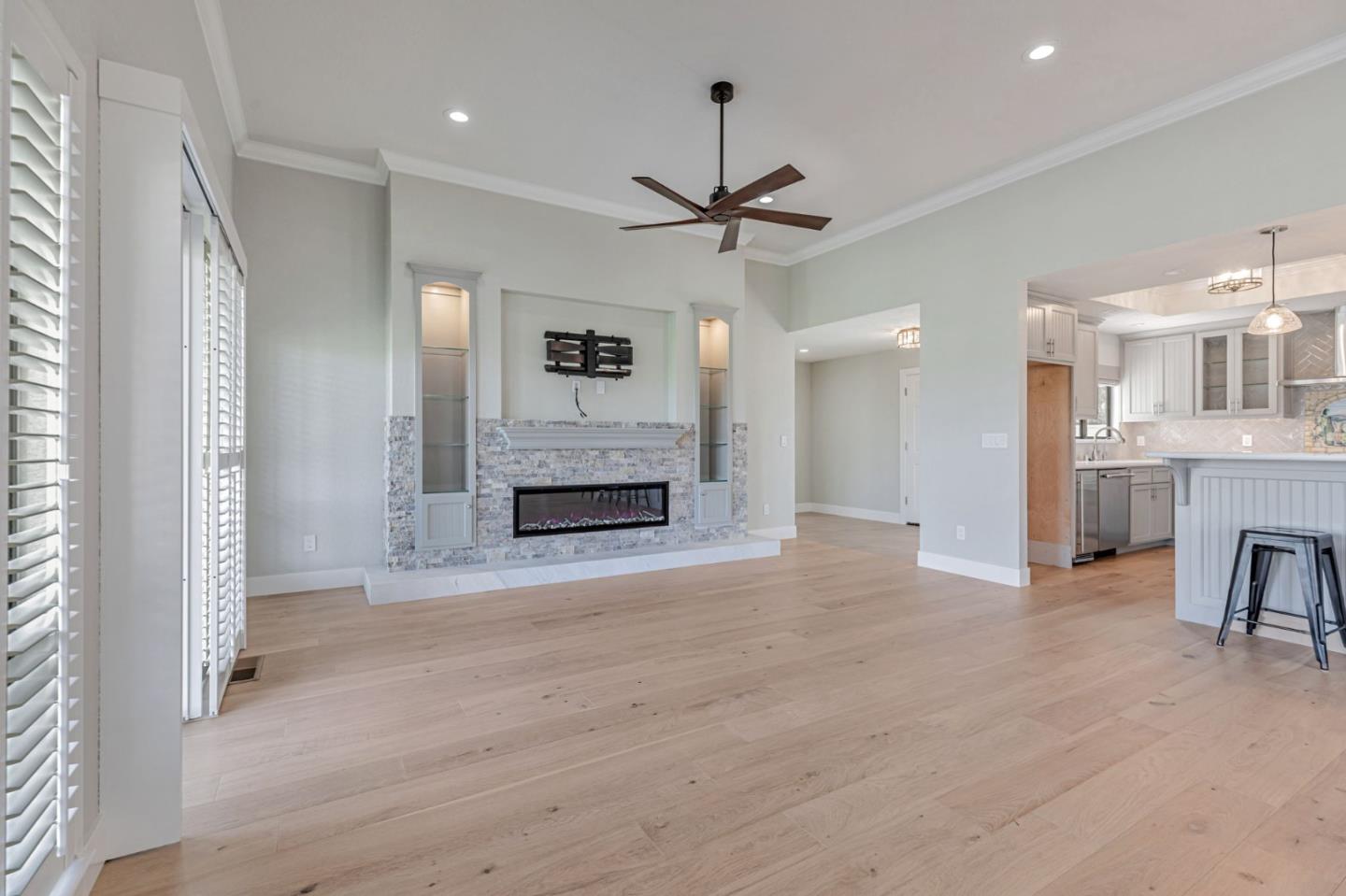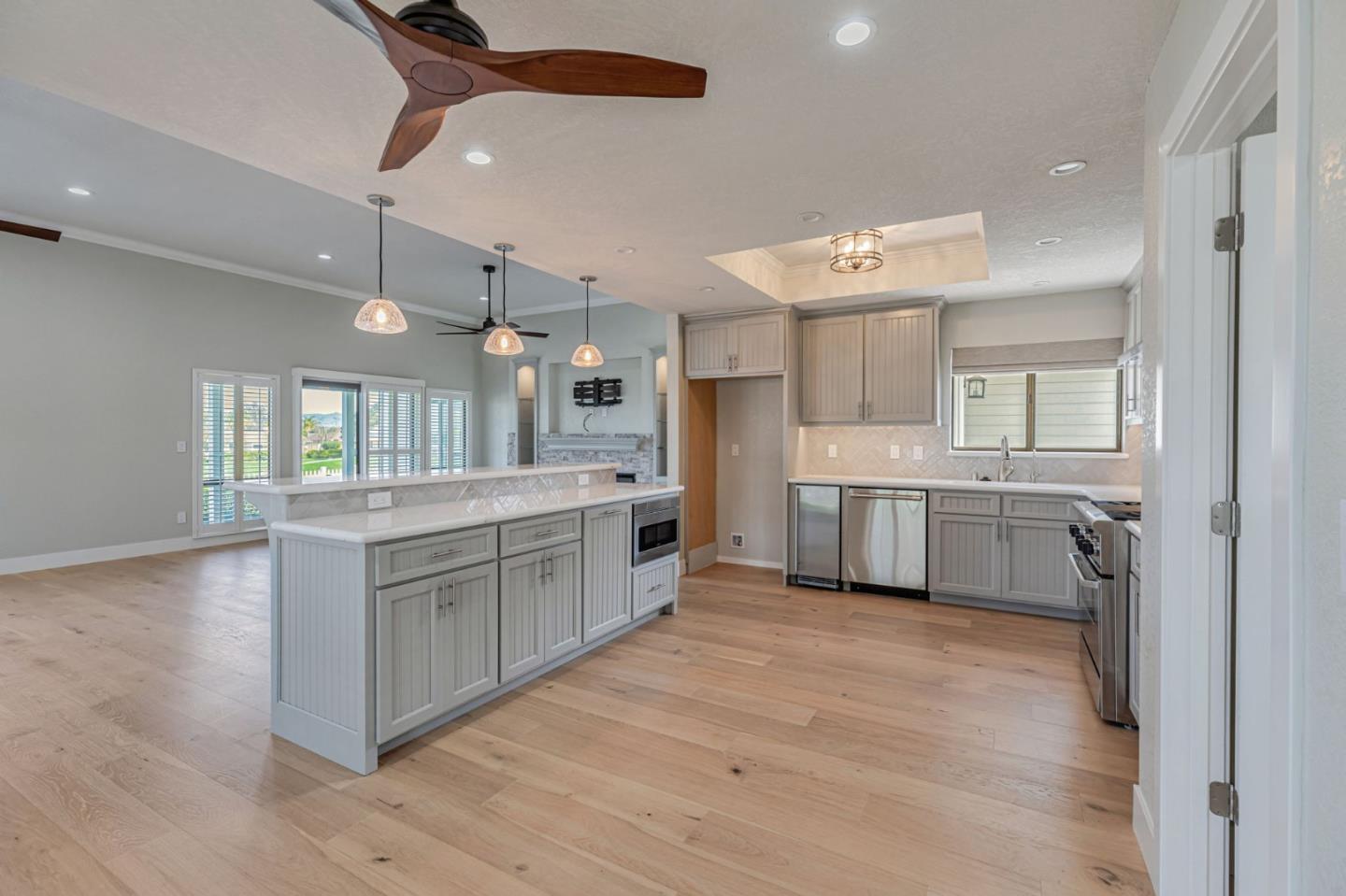 Welcome to this charming home located in the beautiful community of Ridgemark! The kitchen is a chefs dream, featuring granite countertops, stainless steel appliances. The open dining area integrates seamlessly with the living room, perfect for entertaining. This home boasts high ceilings, skylights, new flooring throughout! Interior paint, updated baths and kitchen. The living space is adorned with durable laminate and tile flooring, and a glass fireplace that is truly beautiful. Additional amenities include central AC and heating, an inside laundry area, and a spacious 2-car garage. Don't miss the opportunity to make this delightful property your new home. Located across from the 16th fairway of Ridgemark Golf Course, you can enjoy watching the golfer's "sink their putts" while you relax on your back patio area. Grab a meal at the Ridgemark lounge, enjoy the sense of community at Ridgemark where memberships are available for golf, tennis and pickleball.