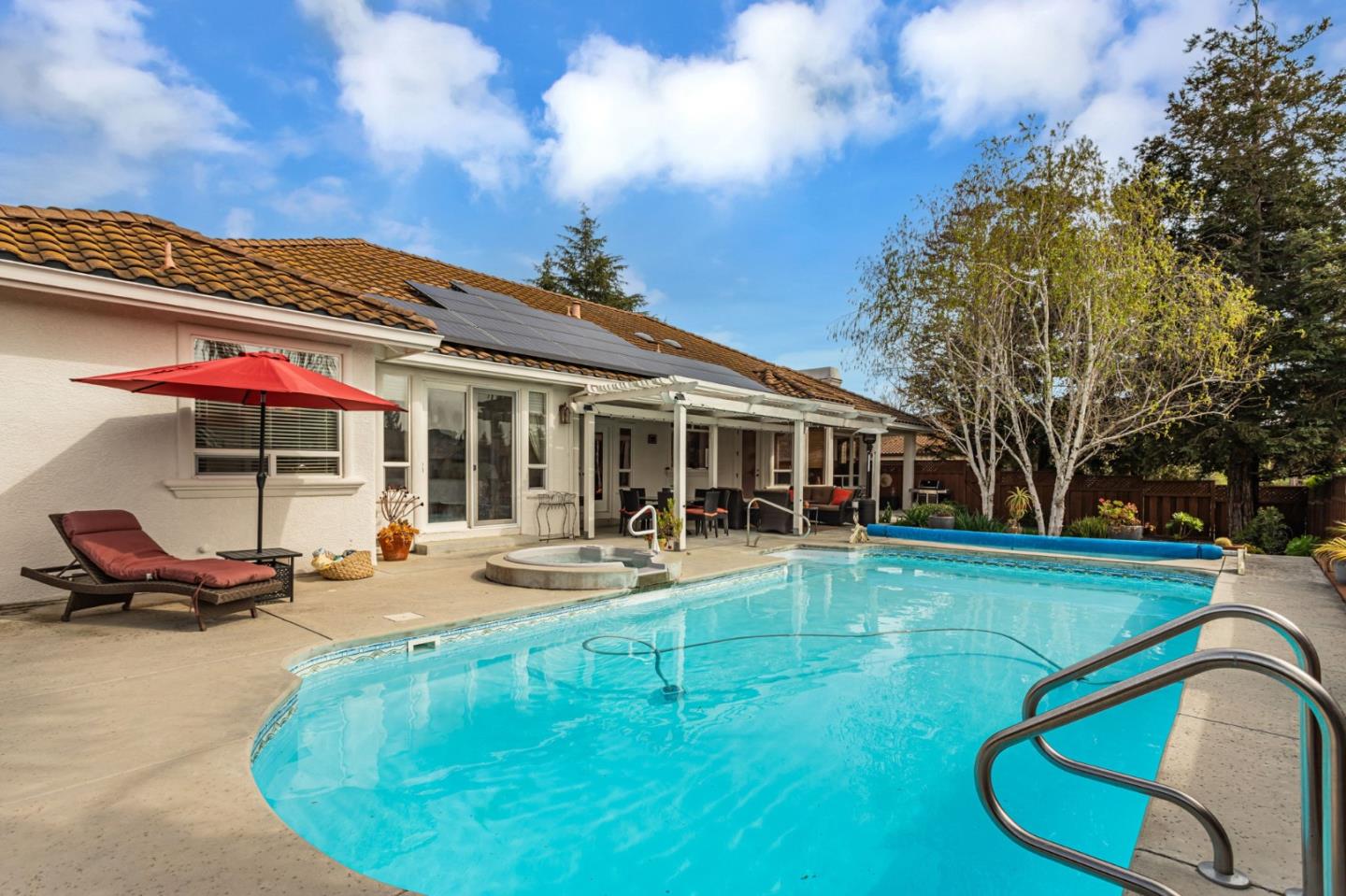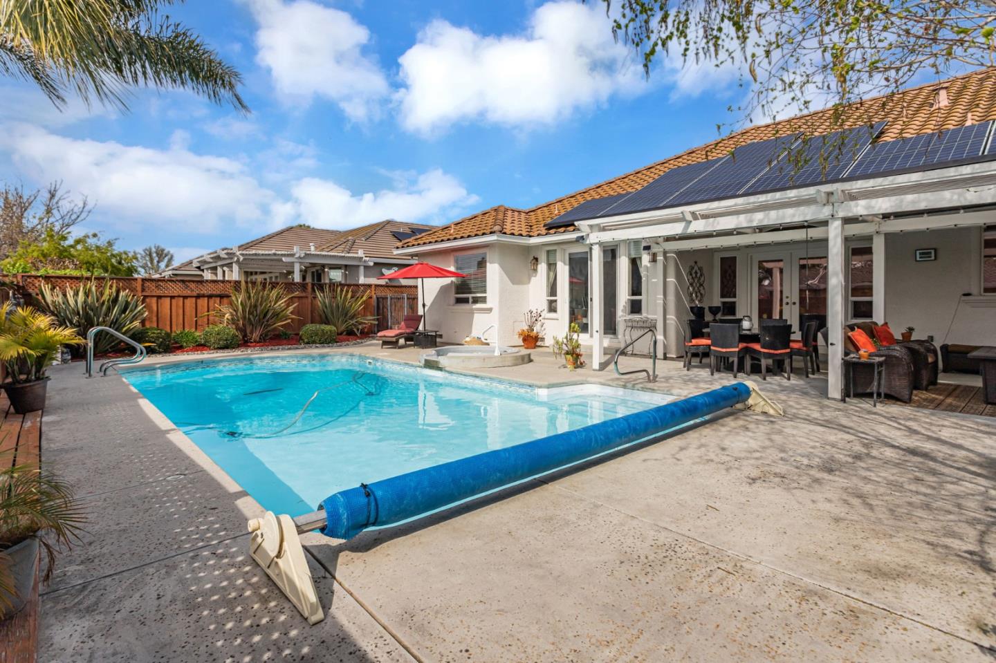 Welcome to this stunning 4-bedroom, 3-bath home located in the beautiful community of Ridgemark Golf and Country Club, where lifestyle is complemented by memberships available for golf, tennis and pickleball. Imagine living in this beautiful home offering a generous 3,279 sq ft of living space on an 11,909 sq ft lot. The kitchen is a chef's delight, featuring all that the chef of the family could desire. The generous kitchen island complete with sink, ample cabinetry for storage, as well so much room to entertain all of your guest! The dining experience is enriched with both a breakfast nook and a formal dining room. Snuggle by the fireplace and enjoy the amenities this beautiful home has to offer, tranquility and space for all. Four spacious bedrooms, three full bathrooms which includes a primary bedroom suite featuring a walk-in shower, tub with jets and a walk in closet. Landscaping includes not just a beautiful pool n spa, but plenty of seating for all of your guests. Treat them to your own home grown fruits! Lime, lemon and Orange trees to enjoy as well. Leased solar too! Located off the golf course and just a few minutes walk to the club house....its a lifestyle !